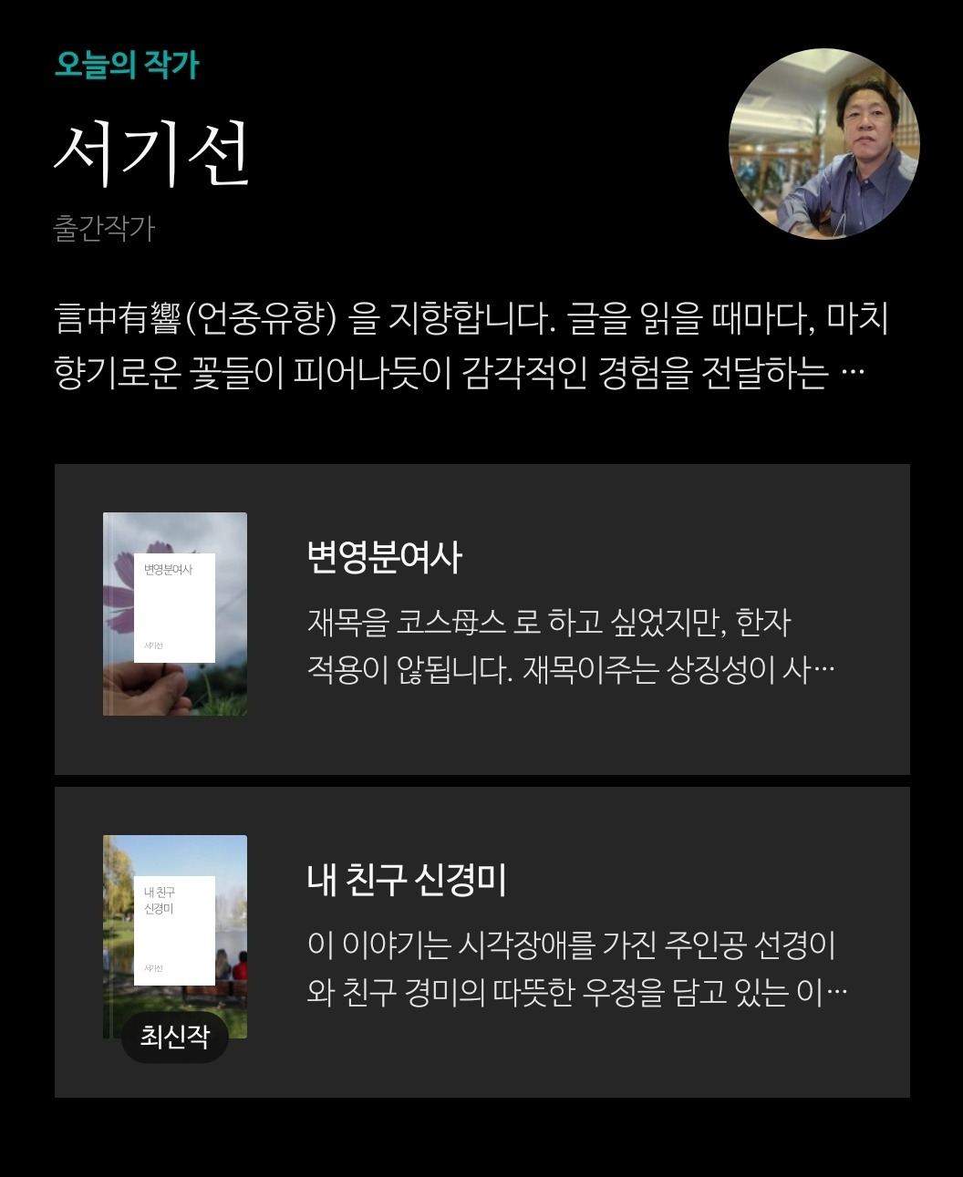 書中有響(서중유향)을 지향합니다. 향기나는 글을 쓰는 것을 목표로 삼고 있으며, 다양한 글을 쓰는 멀티 페르소나입니다.