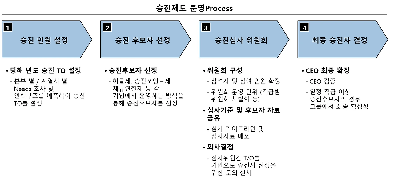 일반적인 기업에서 볼 수 있는 승진제도 운영 Process이다.