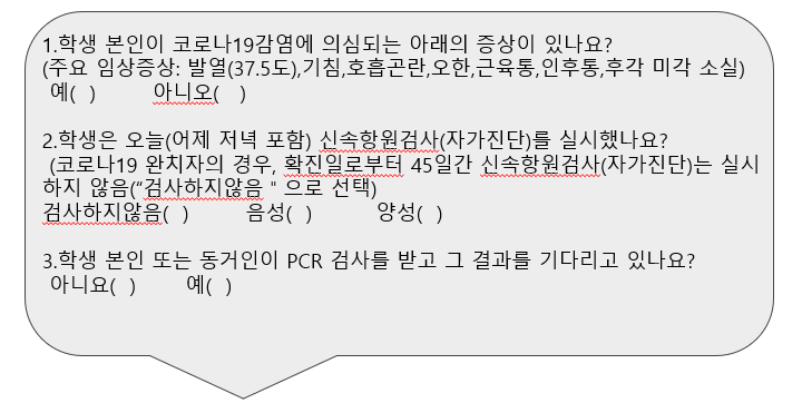 일상이 바뀌었다. 아침에 눈을 뜨자마자 아이들을 깨워 체온계로 온도를 체크한다. 그리고 난 뒤 교육부 건강상태 자가진단 앱에 접속을 한다.