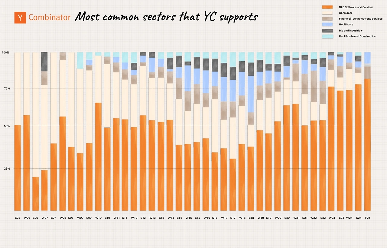 최근 배치를 보면 YC 선발 기준이 B2C 산업에서 주로 B2B 산업군으로 변화했다.
