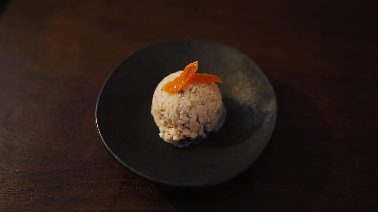 순두부, 무화과, 소금, 메이플 시럽, 레몬즙으로 만든 아이스크림. 고명으로 산청 집에서 만든 감말랭이를 얹어 쫀득쫀득했다. 시중에 파는 아이스크림 같은 달달함을 구현하려면 생각보다 당류가 훨씬 많이 가미되어야 한다는 걸 알게 되었다. 순두부 특유의 풋내가 세서 차라리 코코넛 밀크를 쓰는 게 나을지도 모르겠다고 생각했다. 비건 아이스크림 만들기는 아직 갈 길이 멀다.