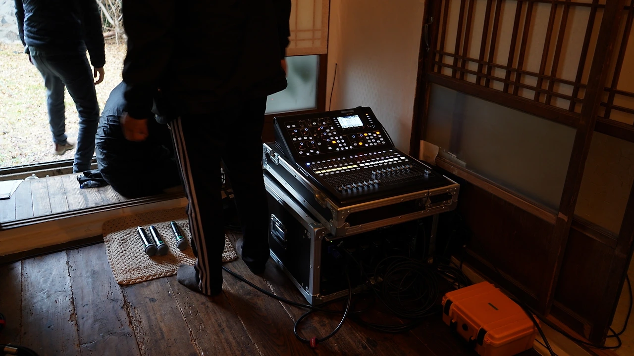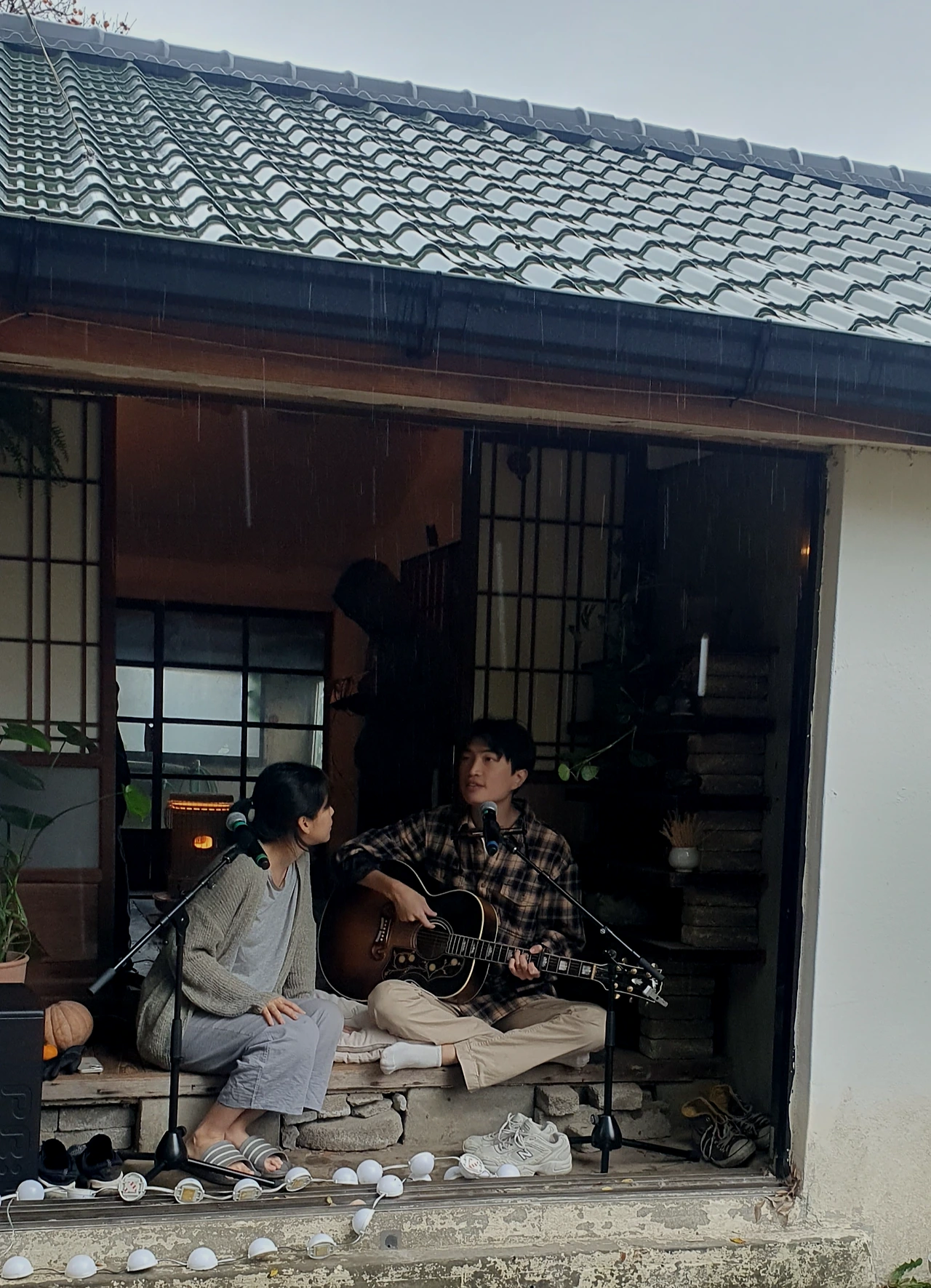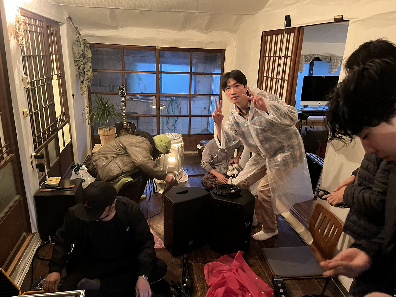 CTRsound 식구들은 오후 한 시 반 즈음에 집으로 와 상황을 살폈다. 양군과 이전에 얘기할 때는 마당에 있던 커다란 나무를 배경으로 하는 무대를 상상했지만, 비가 주룩주룩 내리는 바람에 급하게 배경을 집 마루로 바꾸었다. 전자기기들이 비 맞지 않게 세팅하는 것이 너무도 중요했기에..
