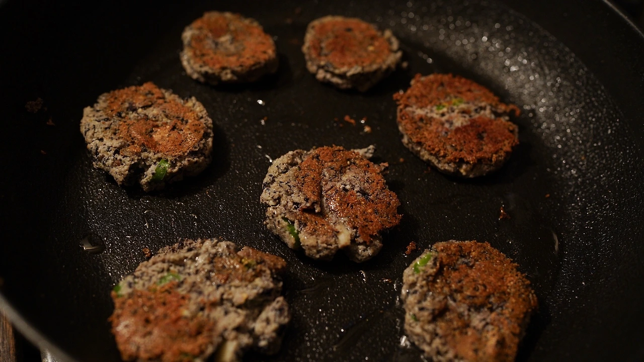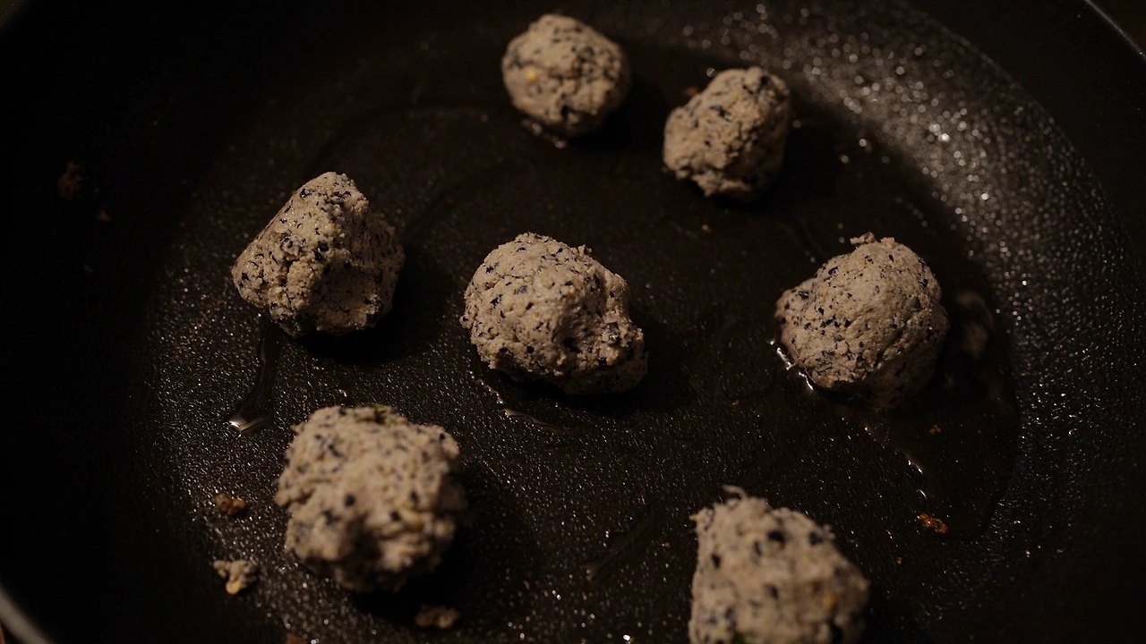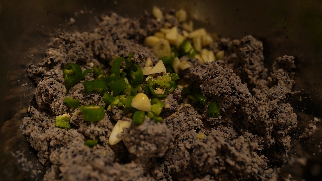 서리태 두부를 만들고 남은 비지에 다진 마늘, 땡초, 소금, 현미유, 튀김가루를 넣고 반죽을 만들었다. 커다랗게 전을 부치면 부서져서 작고 동그랗게 구워냈다. 한입에 쏙 들어가 먹기 편하다.