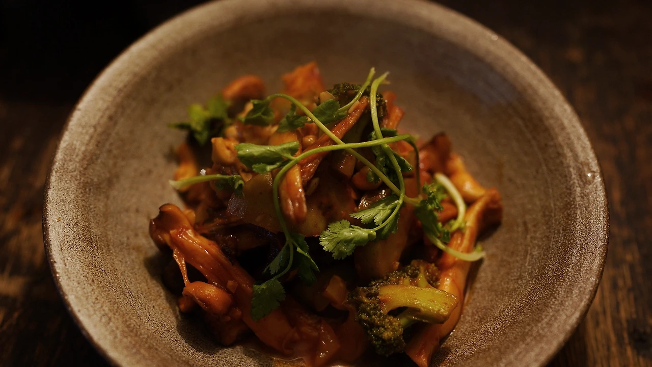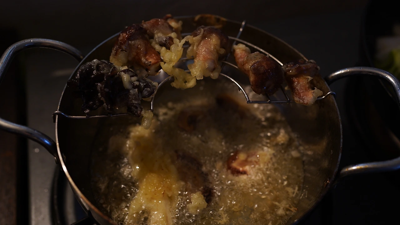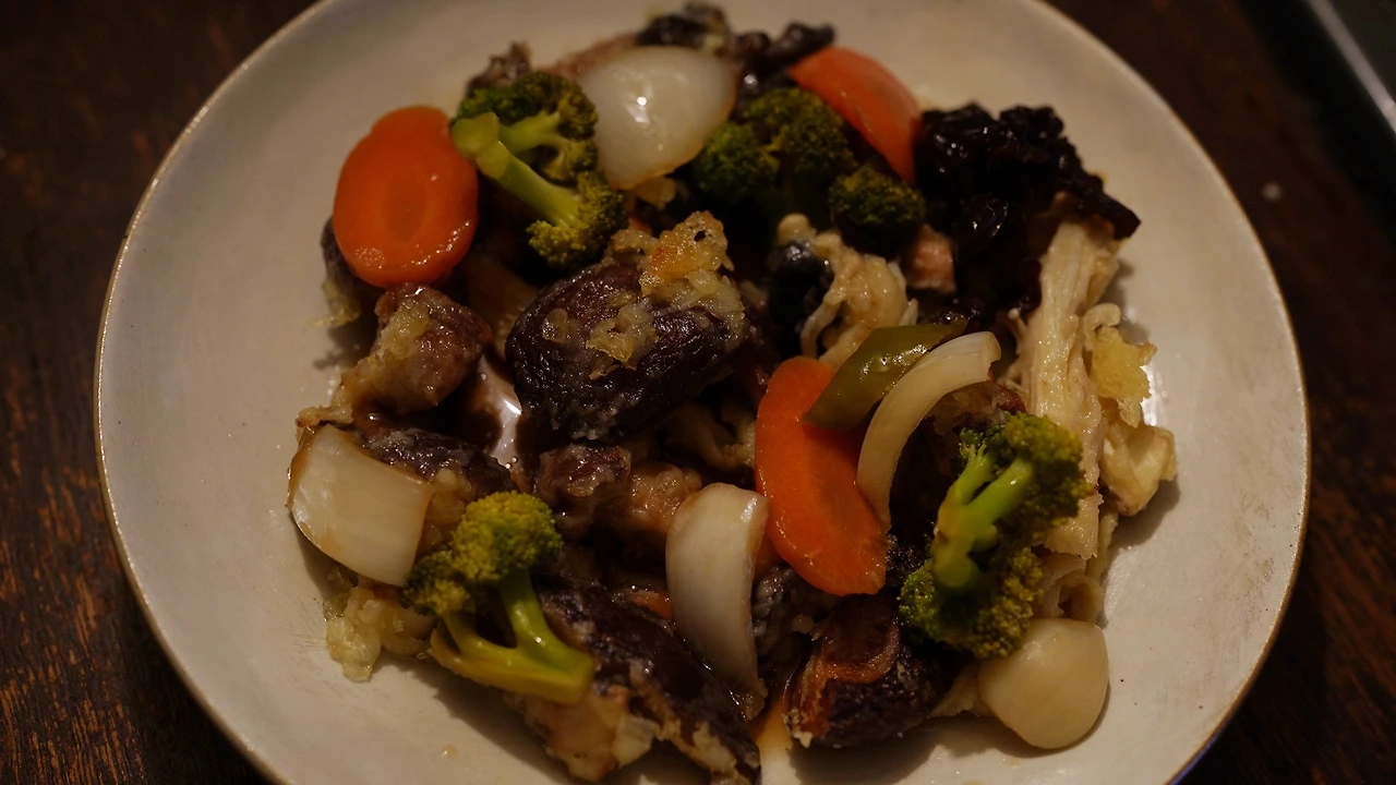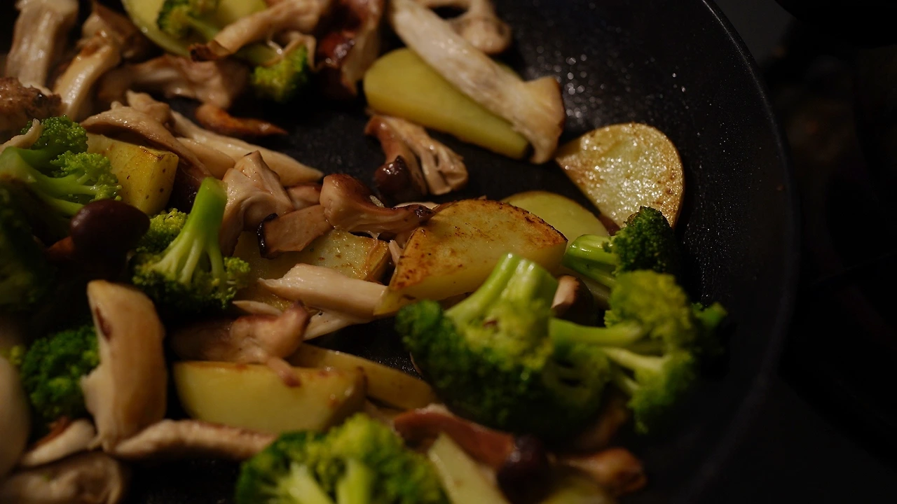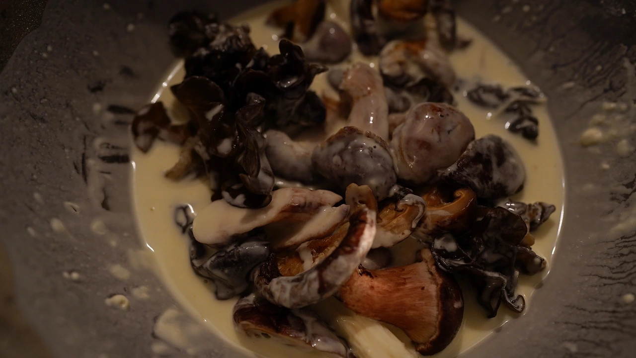 버섯을 종류별로 손질했다. 탕수 소스는 간장, 식초, 아가베시럽, 레몬즙으로 맛을 내고 전분가루를 넣어 농도를 맞췄다. 소스를 팬에서 끓이다가 목이버섯, 당근, 양파, 브로콜리, 마늘, 땡초를 넣어 익혔다. 기름진 음식인데 소스가 새콤해서 크게 부대낌이 없다.