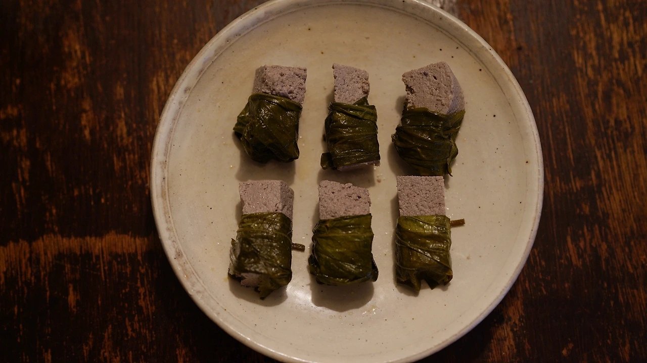 서리태 콩으로 두부를 만들었다. 서리태 콩은 한나절 불려놓고 뜨거운 물에 팔팔 끓인 후 갈아서 콩물을 걸러냈다. 콩물에 들기름을 넣고 다시 끓이며 소금, 식초를 넣고 섞다가 면포에 걸러냈다. 그냥 먹어도 맛있지만 반찬으로는 밋밋하여 깻잎장아찌를 둘렀다.
