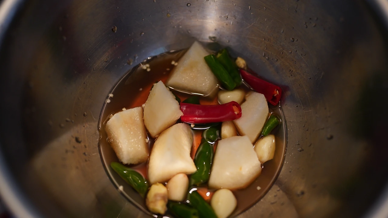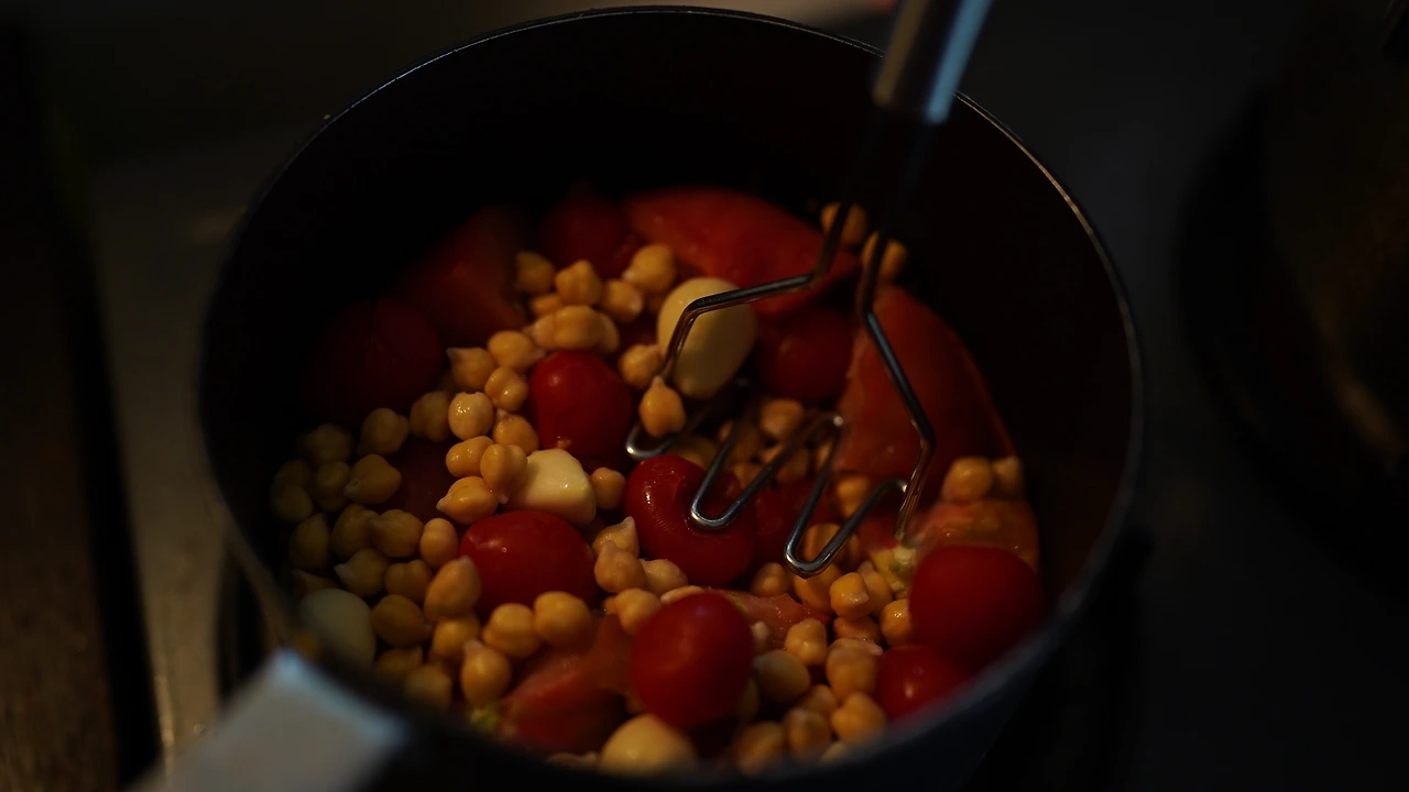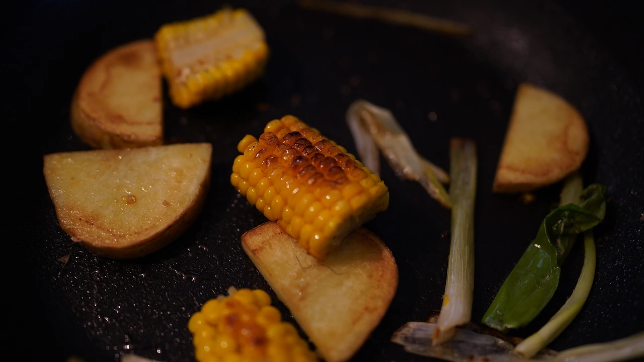 병아리콩을 물에 불리고 초당옥수수를 찐다. 냄비에 병아리콩, 토마토, 방울토마토, 마늘을 넣어 초약불로 푹 삶는다. 토마토와 방울토마토의 수분이 나오면 커리파우더를 넣고 끓인다. 감자, 대파, 옥수수는 기름을 둘러 노릇하게 구웠다.