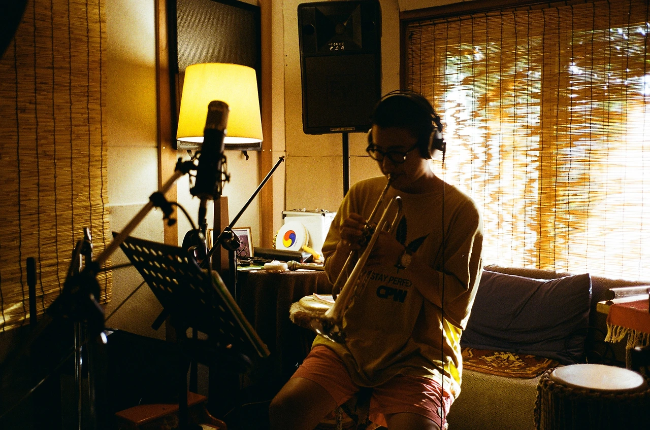 알고 보니 보석의 고향은 경남 창원인데 나의 고향도 창원이다. 보석과 나를 이어준 사람은 드러머 창원이다. 비행기 결항부터 황당한 우연적 만남이 신비하고 놀라웠다. 희한한 인연이다. 작업이 즉흥적으로 시작되었음에도 보석은 정성으로 참여해주었다. 급하게 트럼펫을 빌렸던 터라 자기 악기도 아니었는데 다 아름답게 들리고 황송했다. 참, 여유는 이때도 투명 트럼펫을 만들어 열심히 불었다.