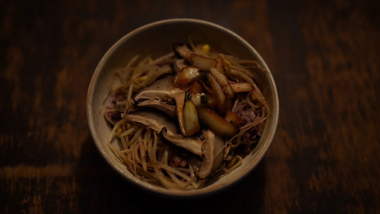 밥 지을 때 콩나물하고 표고버섯만 넣어서 지으면 된다. 양념장은 양파, 쪽파, 땡초를 잘게 썰고 간장, 매실청, 고춧가루, 참기름에 버무린다. 돌김에 싸 먹으면 맛이 좋다. 비건 요리를 다이어트 요리라고 여긴다면 다시 생각해봐야 할 일이다. 이 밥은 폭식의 도화선이니까.