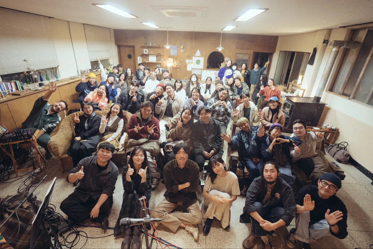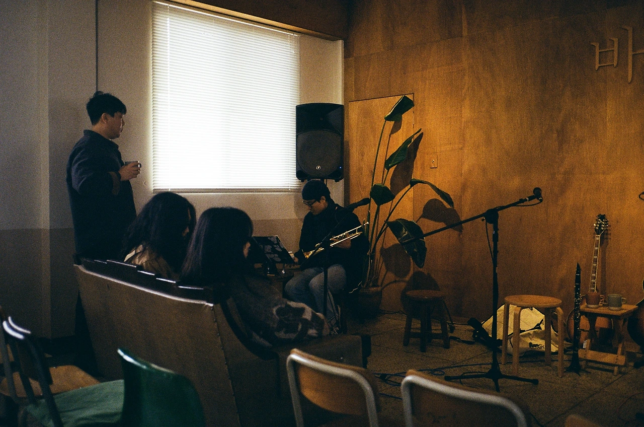 뒤풀이는 모허의 작업실에서 이루어졌다. 우리의 친구와 연주자의 친구까지 해서 열댓 명 정도 모였다. 정혁은 우리 공연을 보러 서울에서 내려왔다. 그는 맑은 눈망울과 따뜻한 음색을 가진 음악가로, 웃음도 많고 장난기도 많다. 제주어에 내적 친밀감이 있다며 사투리를 쓰려고 했는데 제주어 퀴즈를 내면 '모르맨^^' 하고 히죽 웃었다. 우리는 공연자들이 다 같이 모인 게 오늘이 처음이라는 사실, 공연 중에 최성원 선생님이 즉흥적으로 질문받으면 좋겠다고 하신 말씀, 리허설과는 다르게 진행된 곡 등 공연과 관련된 여러 비하인드 스토리를 나누었다. 정혁은 공연이 알고 보니 완전 재즈였다며 해맑게 박수를 짝짝 쳤다.