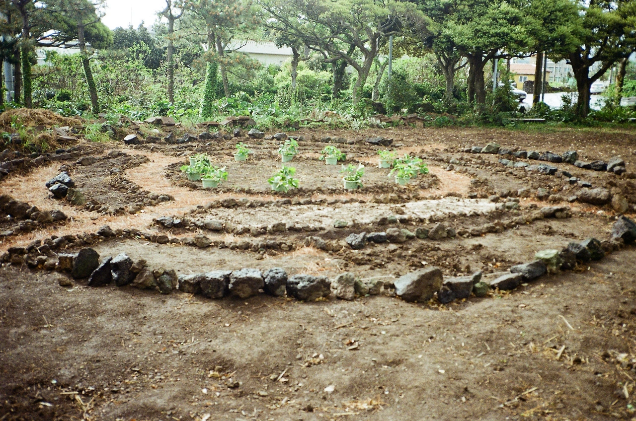 그 뒤로는 오로지 아이들의 힘으로 해내고 있다. 무거운 보도블록 옮기기, 우리가 만들기로 한 텃밭 모양대로 돌 놓기, 잡풀 뽑기, 솔잎을 주워 길에 붓기, 삽질, 호미질, 생태 탐구. 주 1회 만나다가 지금은 매일 점심에 모이고 있고 일일 알바들도 와서 기꺼이 도와준다. 며칠 사이에 밭이 순식간에 형태를 갖춰가고 있으니 피라미드는 사람이 만든 게 맞다는 확신이 들었다.