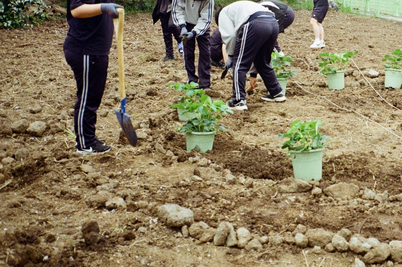처음부터 이런 생김새는 아니었다. 선생님들이 동아리 소식을 듣고 화분에 작물을 키우는 것보다는 텃밭이 낫다고 추천해 주었고 학교에 노는 땅을 알아보게 되었다. 이 땅은 몇 군데 후보 중 하나였는데 예전에 텃밭을 했던 흔적이 있고 수도는 끊긴 상황이라 물을 끌어와야 했다. 풀이 가득하고 빛바랜 보도블록들이 여기저기 널브러진 땅이었다.