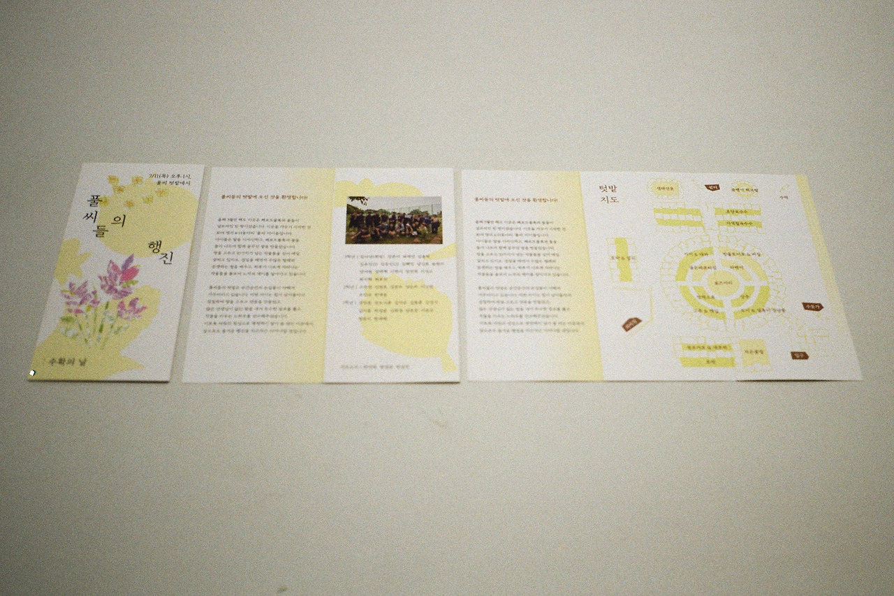 초당옥수수, 방울토마토, 고추, 오이는 손님들이 맛볼 수 있게 준비했다. 많은 사람들이 풀씨를 응원하러 방문했다. 아이들이 보람찬 얼굴로 리플렛도 나눠주고 작물 자랑을 했다.