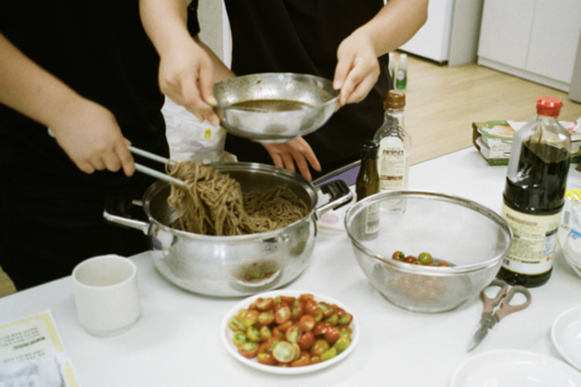 1학기의 마지막 모임으로 비건 요리 워크숍을 했다. 텃밭에서 수확한 작물들을 활용하여 식사류로는 들기름 메밀면과 토마토 커리를, 음료는 복숭아 에이드를 만들었다. 반응은 다양했다. 비건 요리는 맛이 없을 거라는 막연한 거리낌들이 허물어진 아이가 있는 반면 여전히 채소만으로는 진입장벽이 높게 느껴진다는 아이도 있었다.