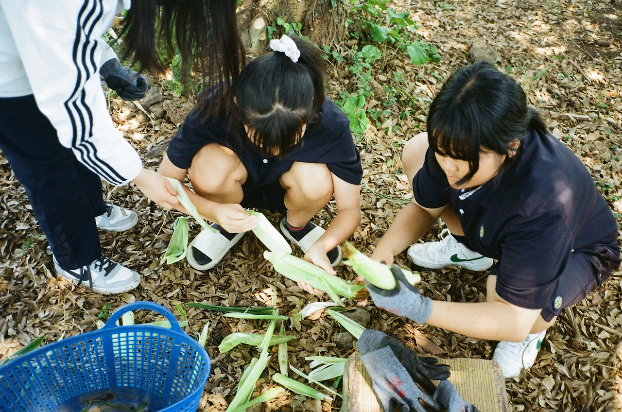 초당옥수수 1차 수확량은 스무 개 정도였다. 아이들이 촘촘하게 박힌 옥수수알을 하나씩 떼어먹으며 행복해했다. 4개월 기다림 끝에 맛보는 달콤함. 따로 약을 치지 않으니 군데군데 벌레 먹은데도 있었지만 이 정도면 대성공이다. 수확한 것들은 활동발표회 때 다 같이 먹으려고 쪄서 얼려두었다.