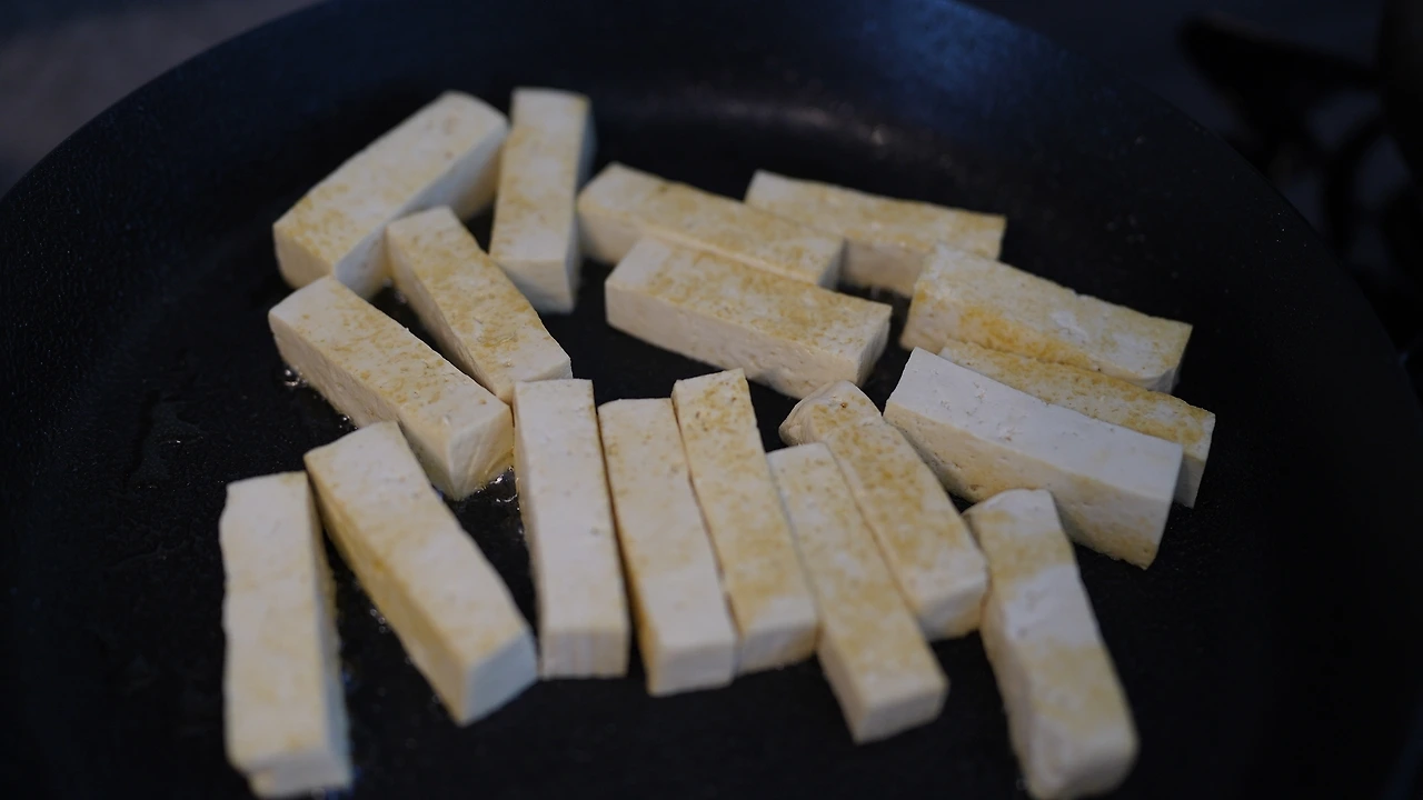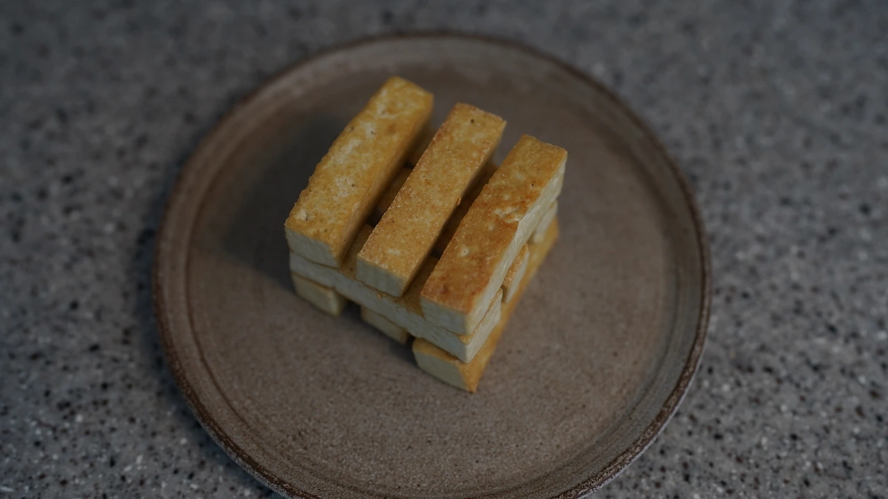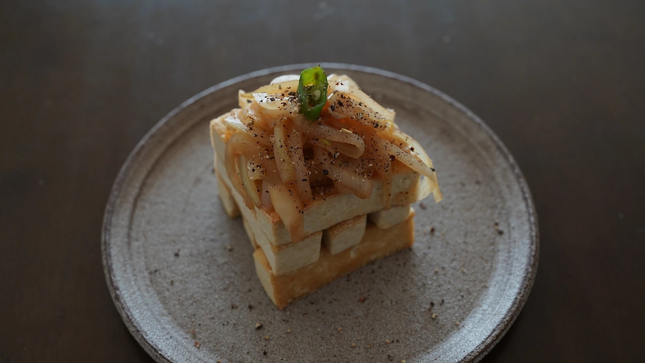 이사 오고 가장 궁금했던 것은 이 지역의 시장이다. 시장에 가면 지역에서 나는 재료도 보고 풍토도 간접적으로 접할 수 있어서다. 장날에 맞추어 가봤더니 손두부를 팔고 있었다. 물기가 적고 단단해서 구이용으로 딱이다. 두부를 젠가 모양으로 썰고 팬에 들기름에 둘러 두부를 구웠다. 양파는 길게 썰고 들기름에 굽다가 간장과 생강청으로 간했다. 두부를 젠가 모양으로 쌓으니 먹는 재미가 있다.