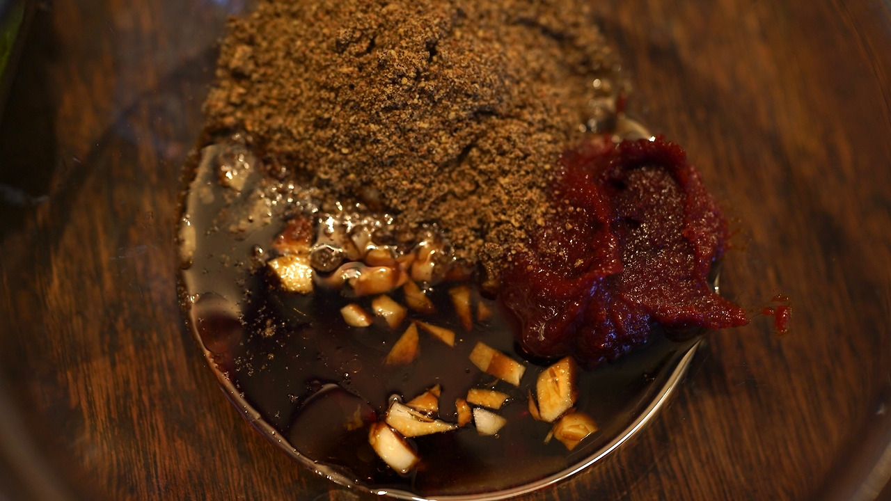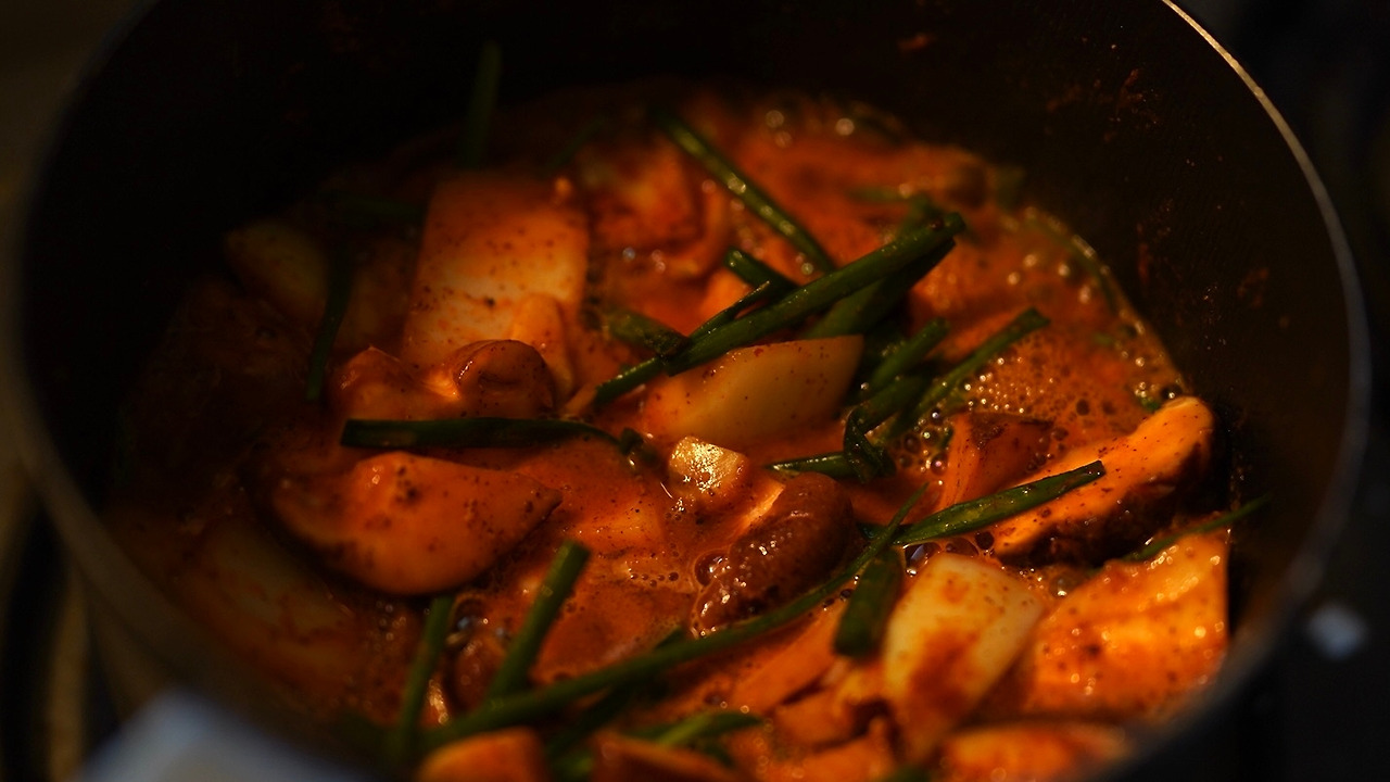 순대볶음 양념에 표고버섯이 주인공인 요리다. 양념장은 들깻가루, 고추장, 간장, 매실청, 연두, 참기름, 마늘을 섞어 만들었다. 여기에 가끔 된장을 섞기도 한다. 양파와 표고버섯은 큼직하게 썰고 쪽파도 숭덩숭덩 썬다. 조리하기 전에 양념장과 채소를 미리 버무려 두면 채소에 간이 밴다. 냄비에 참기름과 마늘을 넣어 먼저 볶다가 버무려둔 것과 물을 더해 끓인다. 깻잎은 마지막에 썰어 올린다.