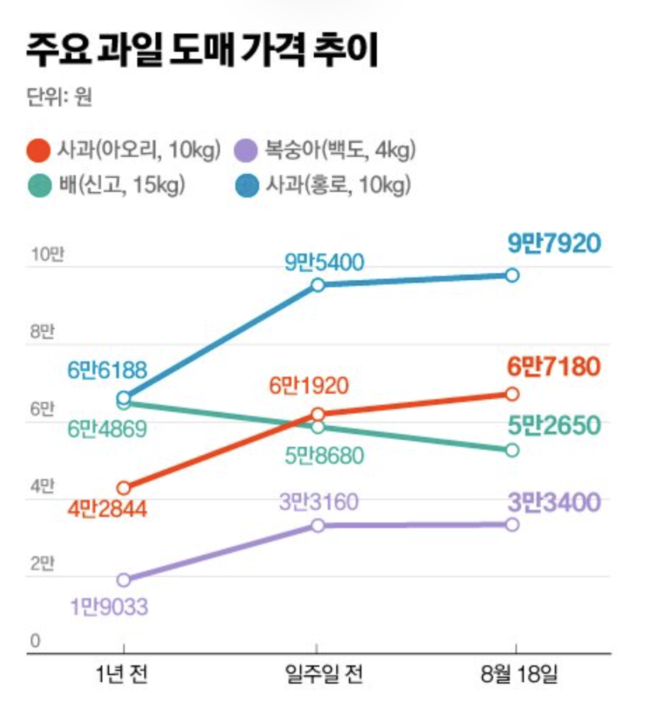 요즘 과일 값이 왜 이렇게나 비쌀까라고 생각한 이유가 보인다. 오르는 속도가 무섭다 무서워.