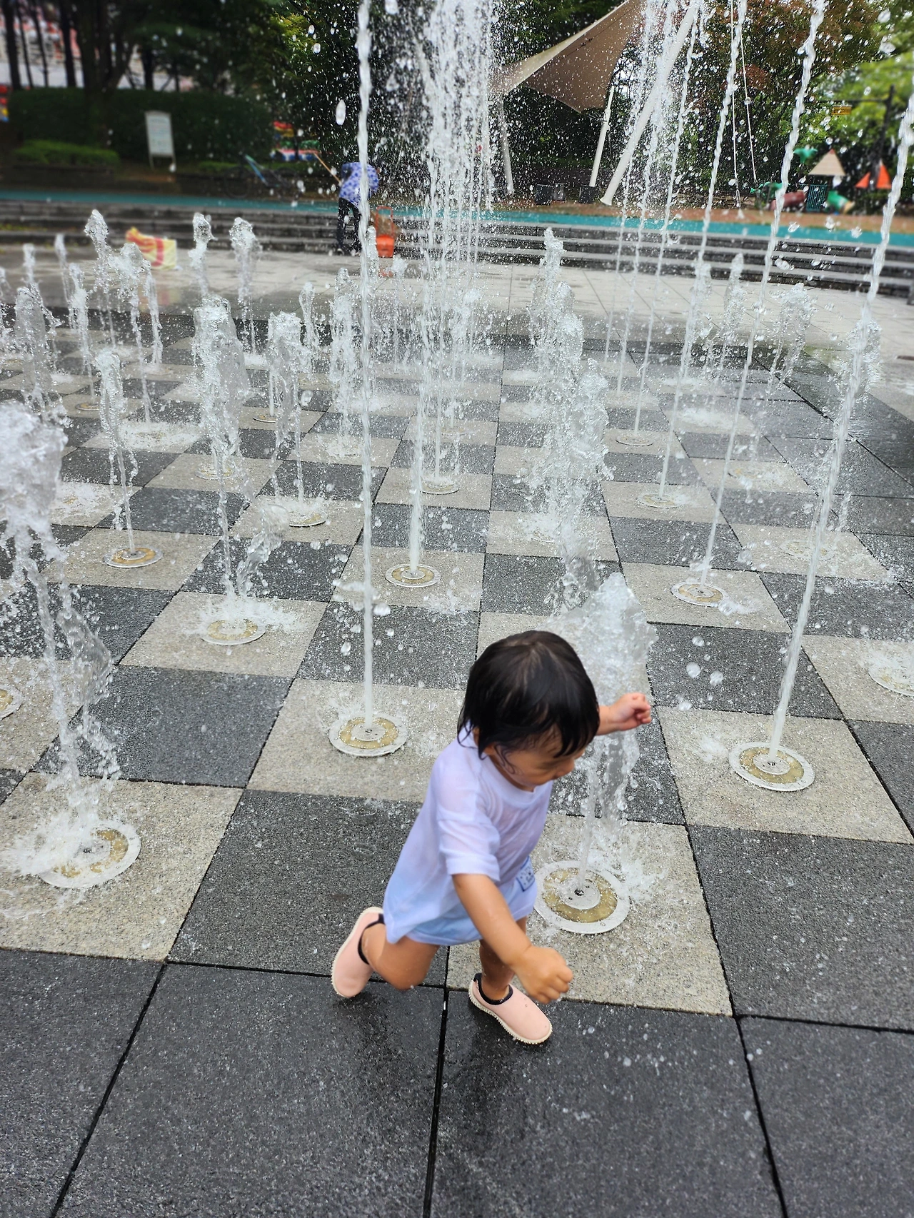 남편의 휴식을 위해 아이를 데리고 놀이터에 갔다가 갑자기 시작된 바닥분수로의 돌진