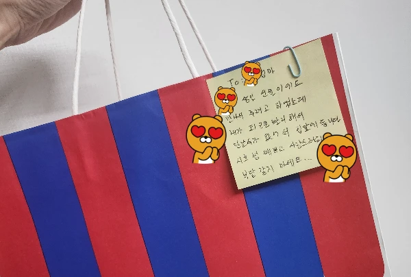 '아기엄마~ 부담스럽게 생각하지 말고 아이 선물 주려고 샀어요.'