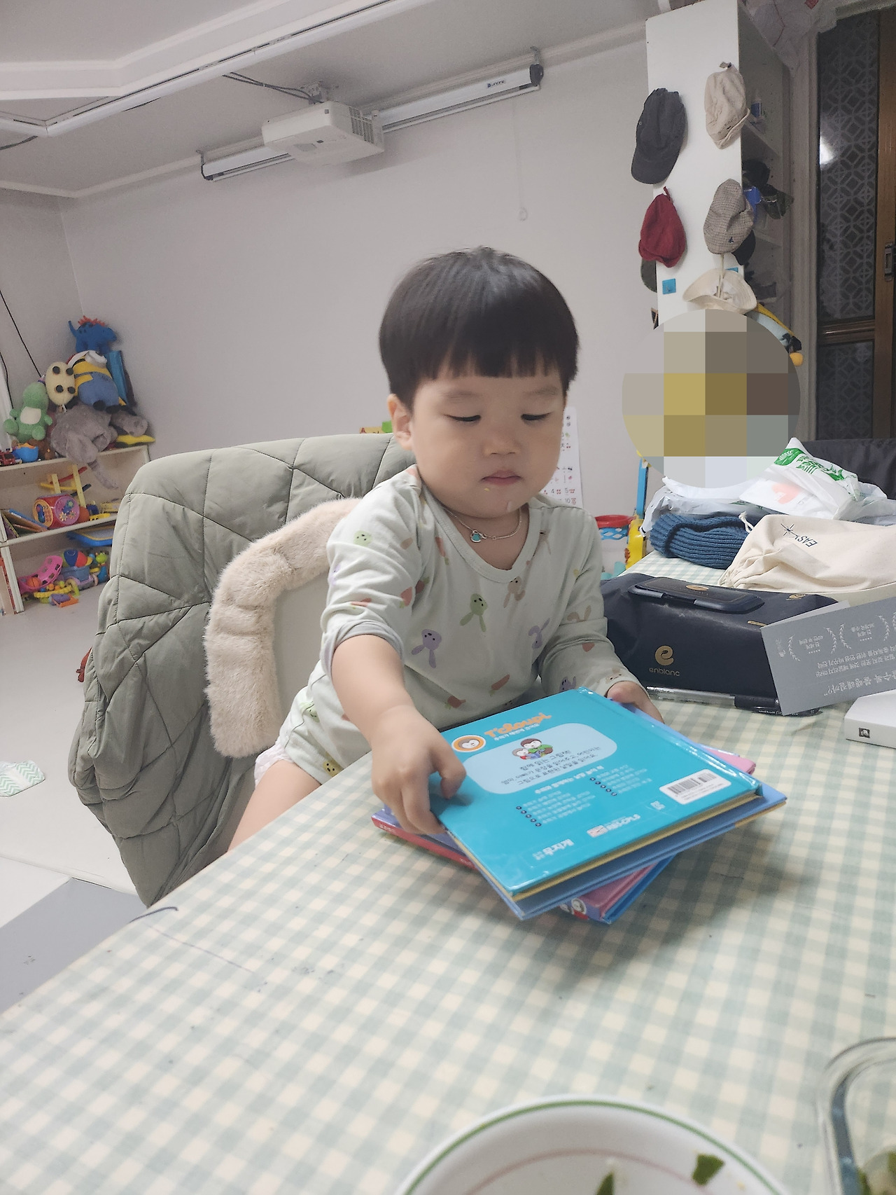 잠시 누워있다가 남편과 하원한 아이를 두 팔 벌려 환영했다. 아이는 손에 과자를 잡고 입에 와구와구 넣은 채 나에게 "앙뇽"이라며 인사를 한다. 단어 단어로 표현하는 너의 조그마한 입술이 웃겨서 피식 웃어본다. 어느 때처럼 따뜻한 밥 한 그릇을 아이에게 선물하곤 아이와 책을 읽는다. 책을 5권은 들고 와서 많이 읽어달라는 너, 솔직히 조금 피곤하지만 몇 번이고 반복한다.