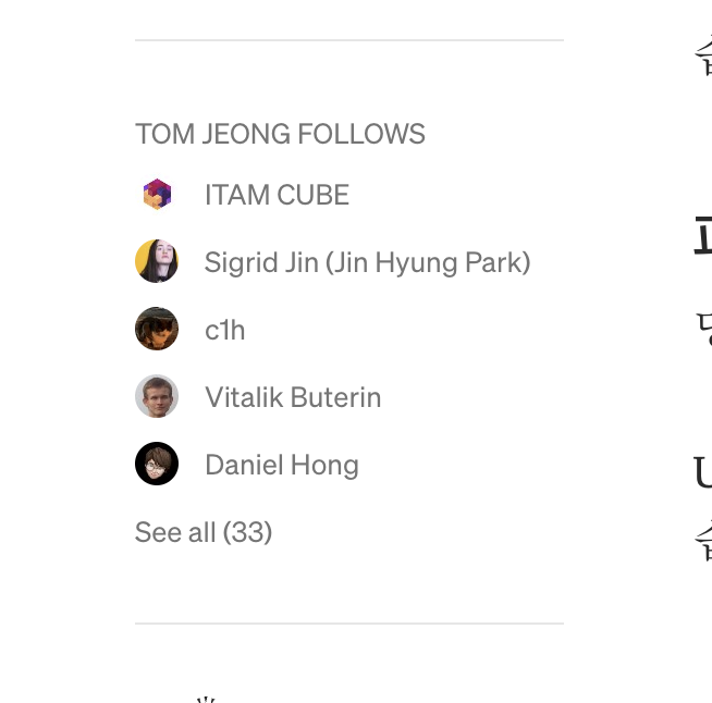 하지만 세상은 마음대로 되지 않았고, 많은 방황을 했습니다. 해당 글을 다시 보면 이더리움의 비탈릭 부테린도 팔로우 했더라구요, 한글로 쓰여진 글이였는데. 만약 저 계정을 내가 가지고 있었다면, 아니 계속 프로젝트를 잘 진행했다면 어땠을까 하는 생각도 있고, 저때는 내가 글을 잘쓰는것처럼 보이네 하는 생각이 있었습니다.