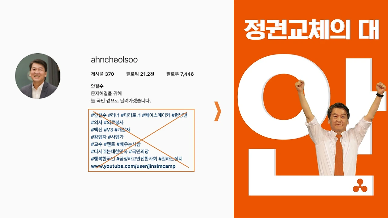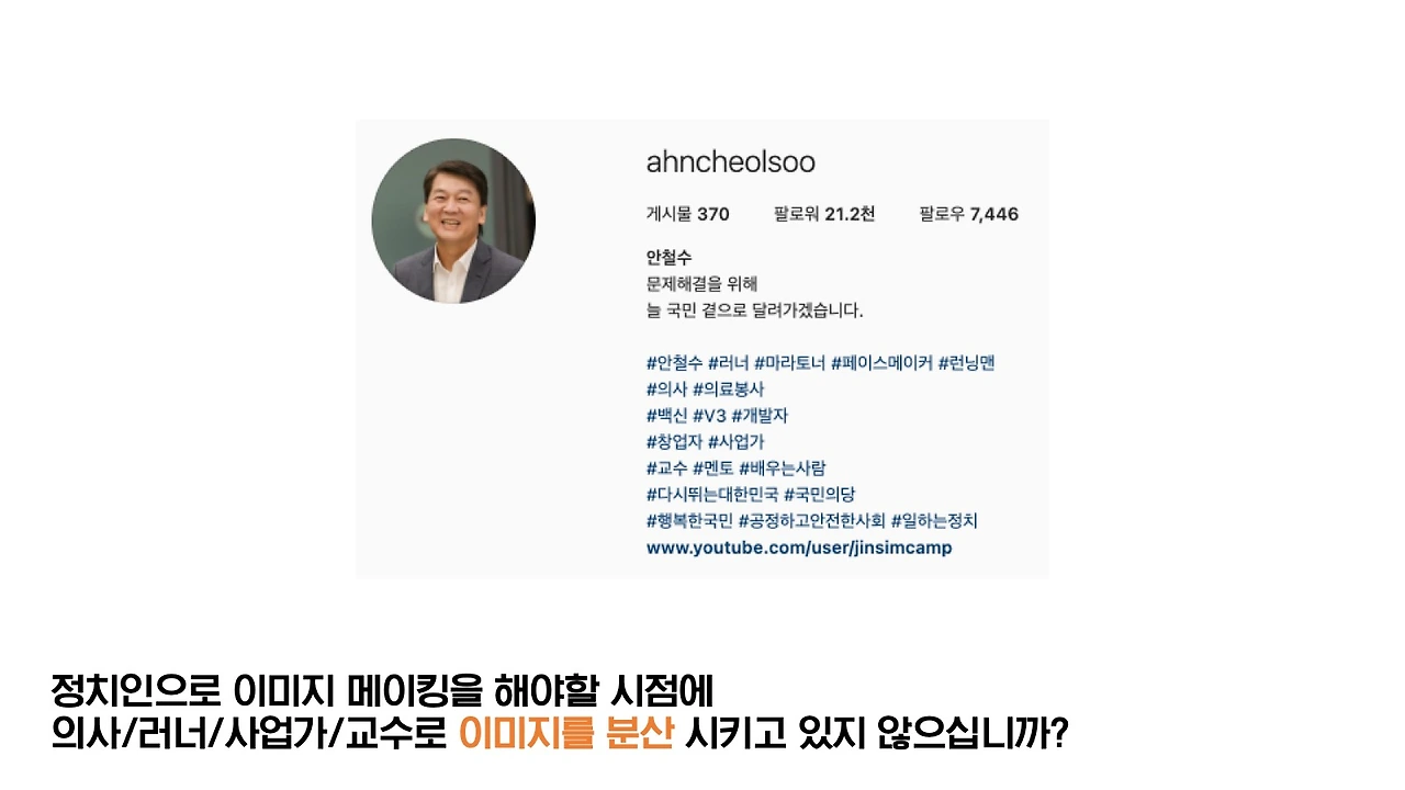 안철수 대표의 인스타그램 해시태그를 보면 골치가 아프다.