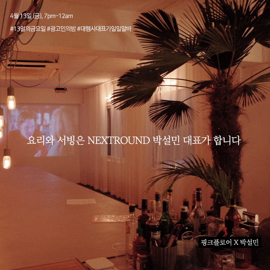 4월 13일의 금요일, 핑크플로우에 오신다면 서빙하는 저를 보실 수 있습니다ㅎㅎ
