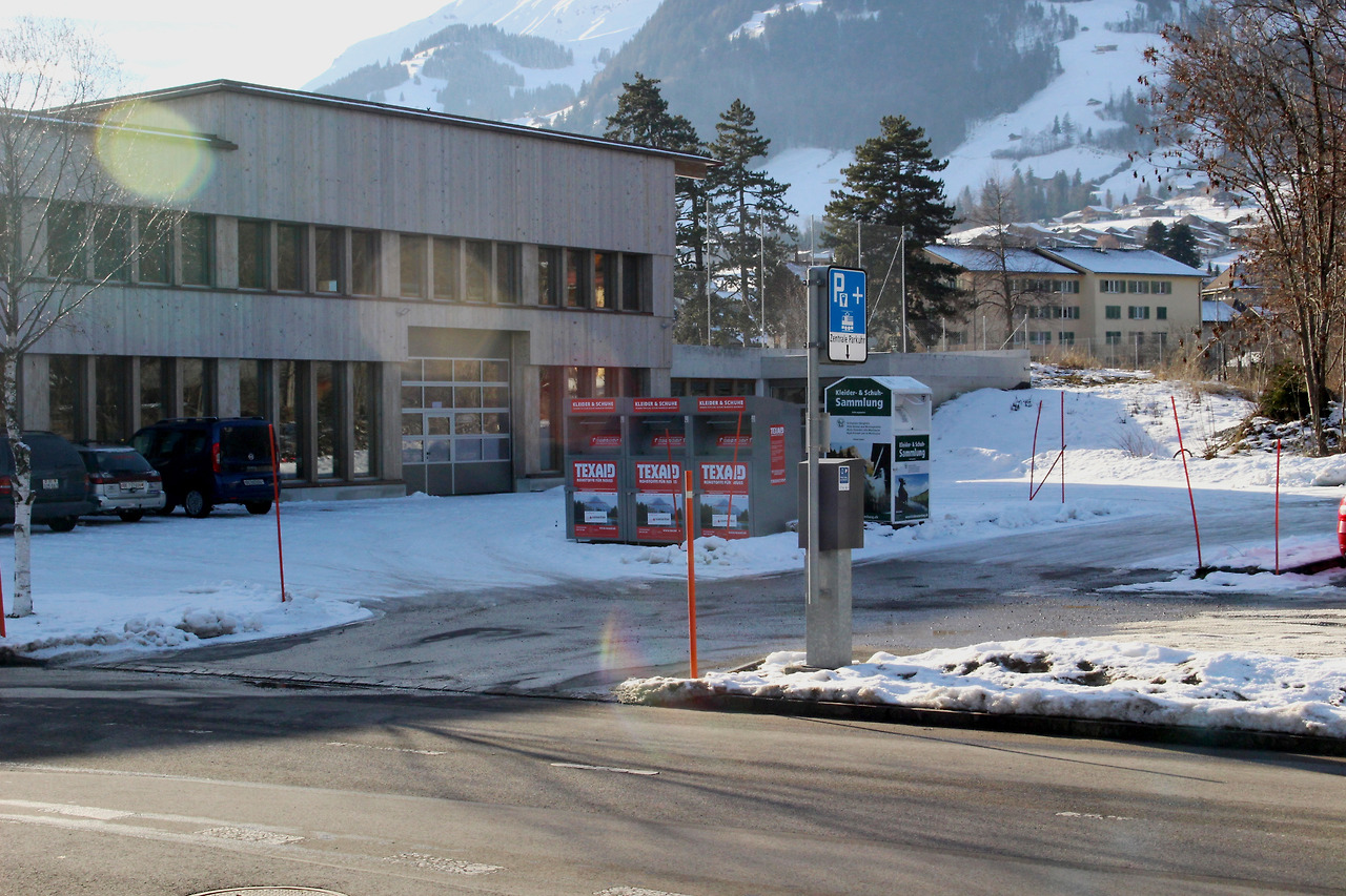 이 곳은 인터라켄 역으로 향하는 승객들이 잠시 정차하고 지나치는 역이다. 눈에 띄는 상점이나 식당은 보이지 않았다. 역 주변으로 이층이나 삼층 정도 되는 높이의 작은 건물들이 몇 채 있었지만, 그곳에 들어가고 나가는 사람의 행적은 묘연해 보였다. 내가 올린 사진 속 건물들의 생김새는 대체로 단조롭다. 사진에서 좌측의 회색 건물 앞에 주차되어 있는 세 대의 승용차가 보인다. 그보다 조금 더 떨어진, 아스팔트 도로와 면한 곳에는 주차 정산기가 설치돼 있다. 다만 주행 중인 차나 행인은 등장하지 않는다. 주차된 차들과 정산기 사이 가운데 위치한 네 개의 의류수거함이 투박하게 서 있을 뿐이다. 나란히 놓인 세 개의 수거함 전면을 감싼 빨간 포스터에 "TEXAID"라는 사명이 큼직하게 쓰여 있다. 그 상단에는 "Kleider & Schuhe"라는 문구가 쓰여 있는데, 이는 독일어로 옷과 신발을 뜻한다. 스위스는 4개 언어(독일어, 프랑스어, 이탈리아어, 로만슈어)를 공용어로 사용하고, 독일어는 그 중 사용 비율의 절반이 넘게 쓰이는 언어다. 우측에는 기물의 모양과 포스터의 색이 다른 또 하나의 수거함이 있다. 아마도 다른 회사의 것으로 생각된다. 하얀 박스에 발라진 초록색 포스터에 굵은 글씨로 "sammlung"이라 쓰여있다. 수집, 모으기를 의미하는 독일어다.