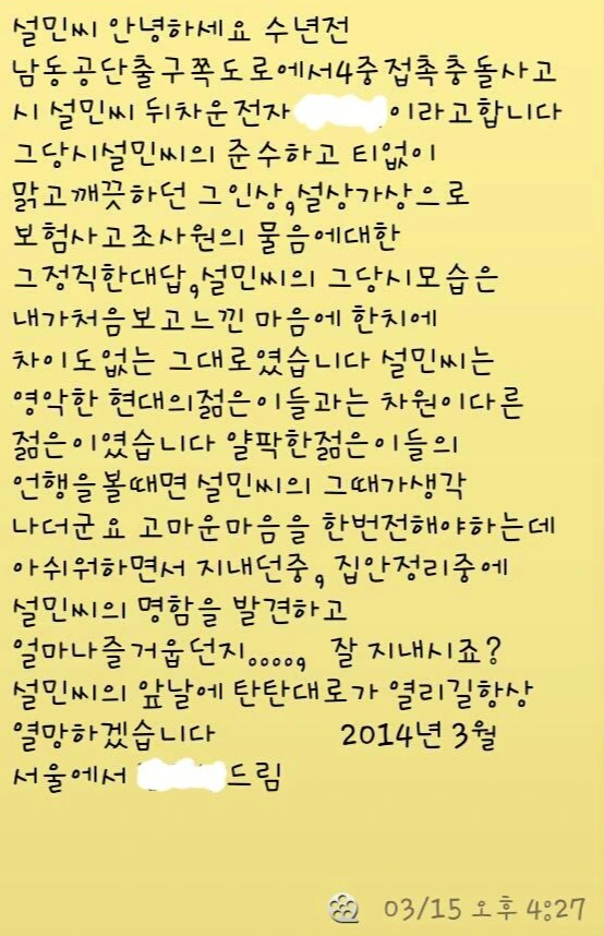 내 뒤차 운전자에게 한 통의 문자를 받았다.