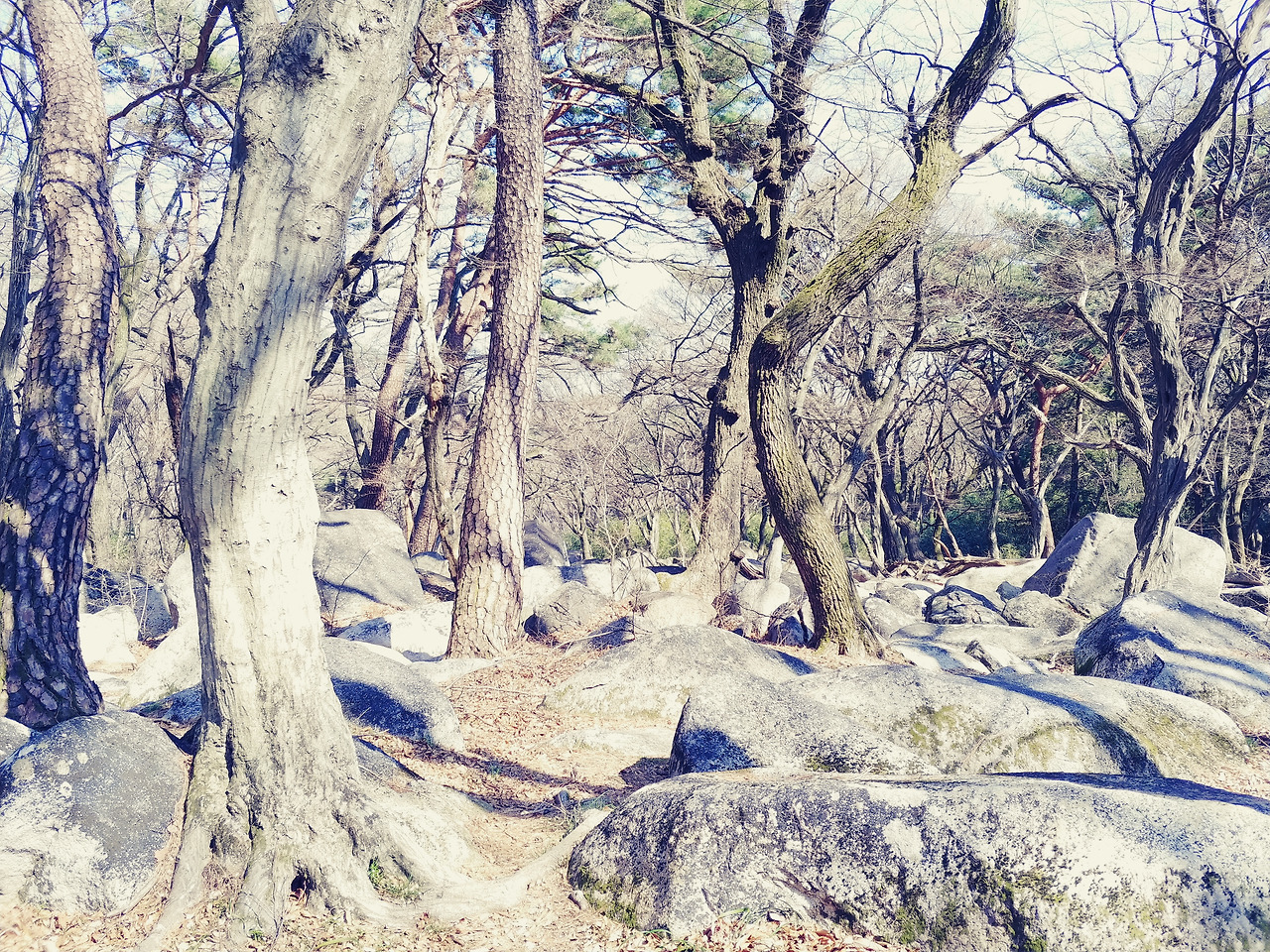 사람들 발길이 뜸한 곳을 찾아 오랜만에 봄 나들이에 나섰다. 너럭바위와 아직 잎이 돋지 않은 나무들의 풍광이 작금의 세상살이만큼이나 스산하다.