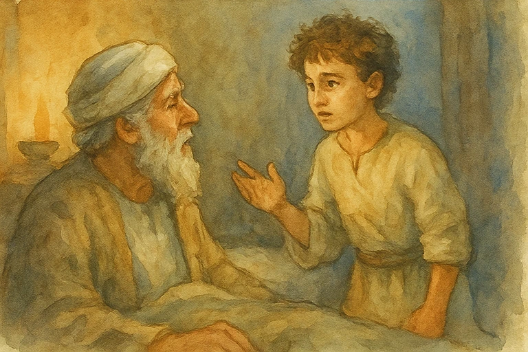 다음 날, 엘리가 사무엘을 불러서 물었어요.