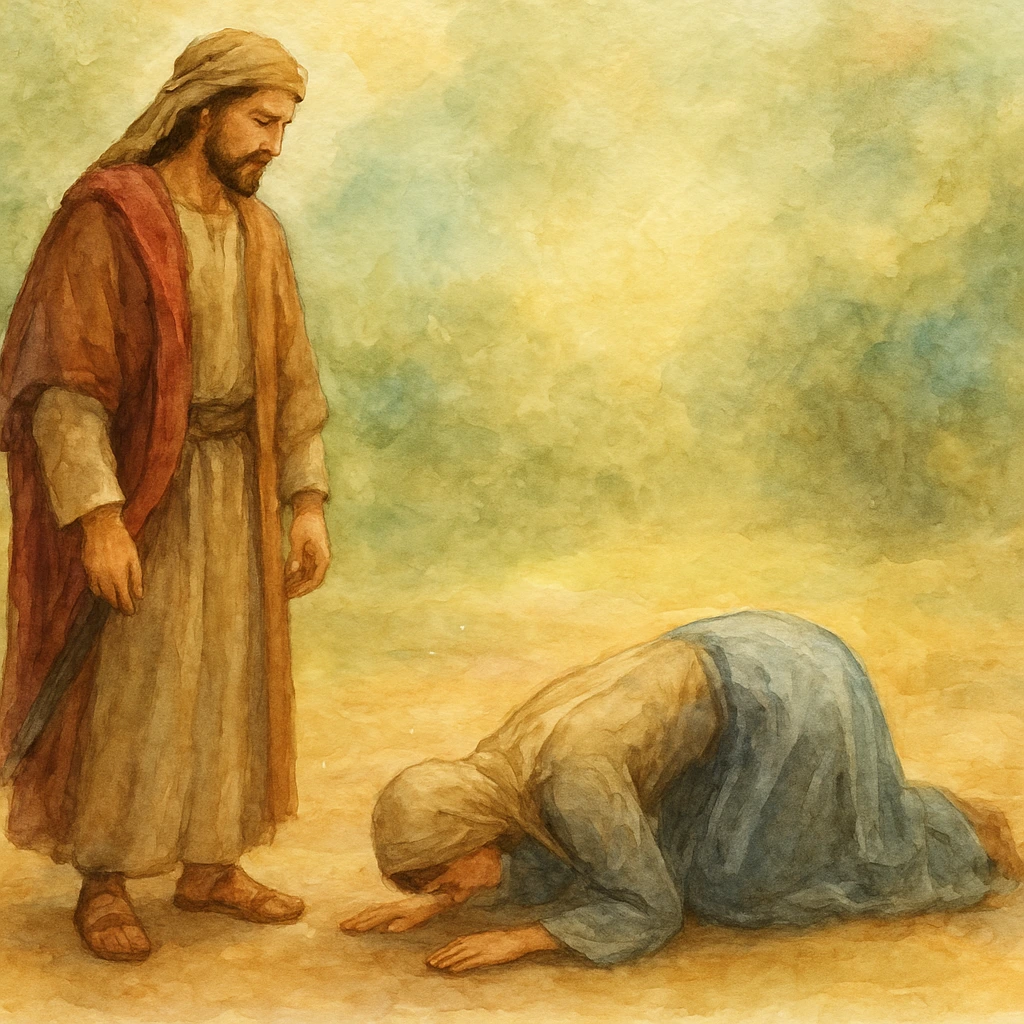 다윗을 본 아비가일이 얼른 나귀에서 내려 얼굴을 땅에 대고 절하였어요.