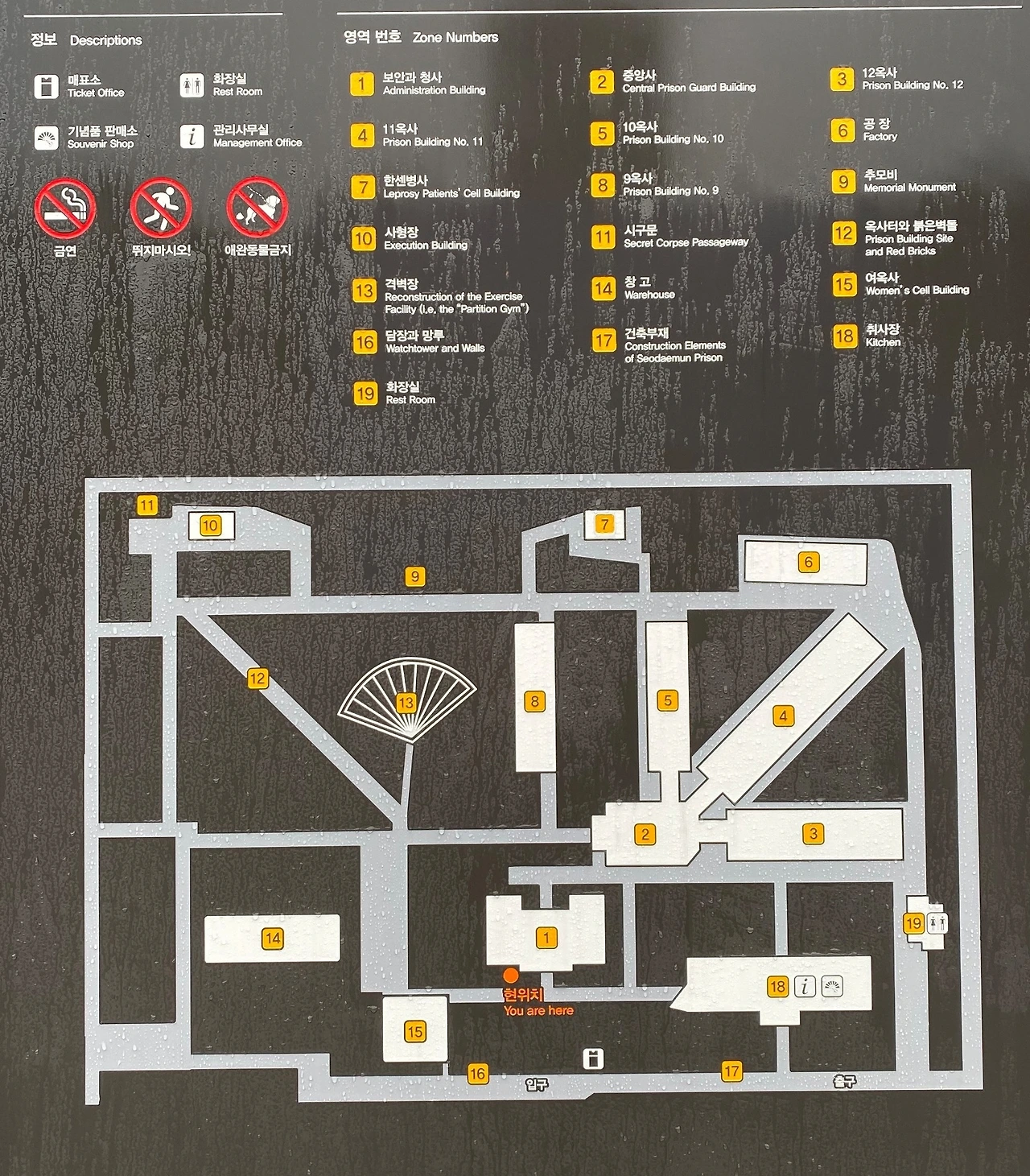 동선을 따라 옮기는데 독립투사들이 갇혀 있던 옥사가 어두운 민낯을 드러낸다. 현재 보존되어 있는 곳은 11, 12, 10, 9번의 네 개 동과 여성들을 수감한 옥사 한 동이었다.
