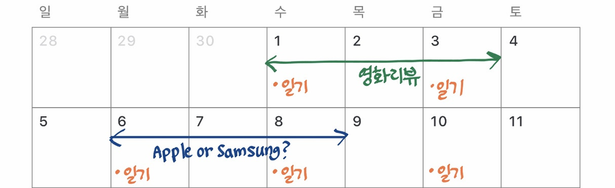 다양한 형식의 글을 써본다면 그만큼 여러 가지의 문장 형태를 내 것으로 만들 수 있을 것이다. 나의 스케줄에서 지속할 수 있는 양의 작문 계획을 세워보자.
