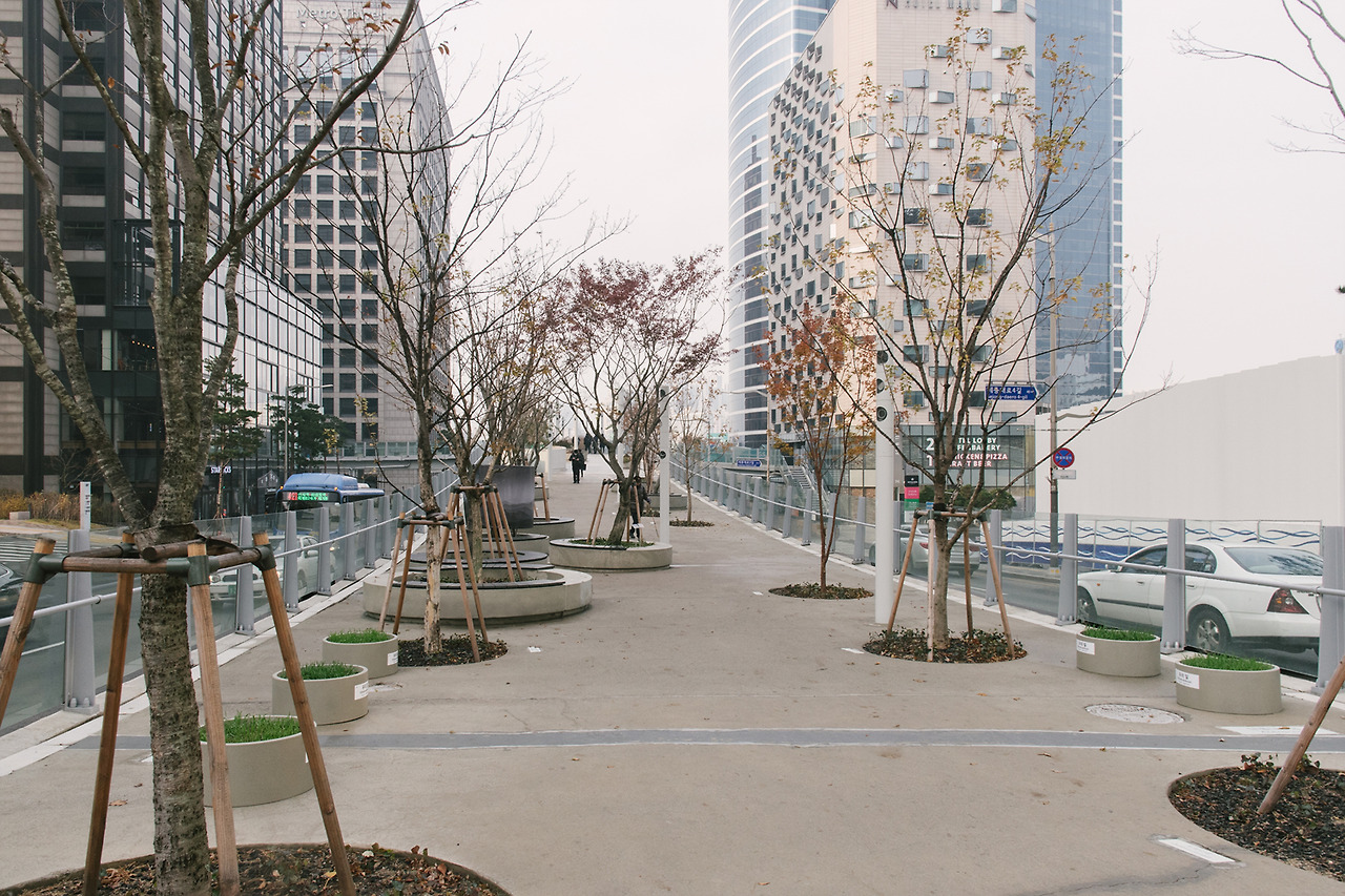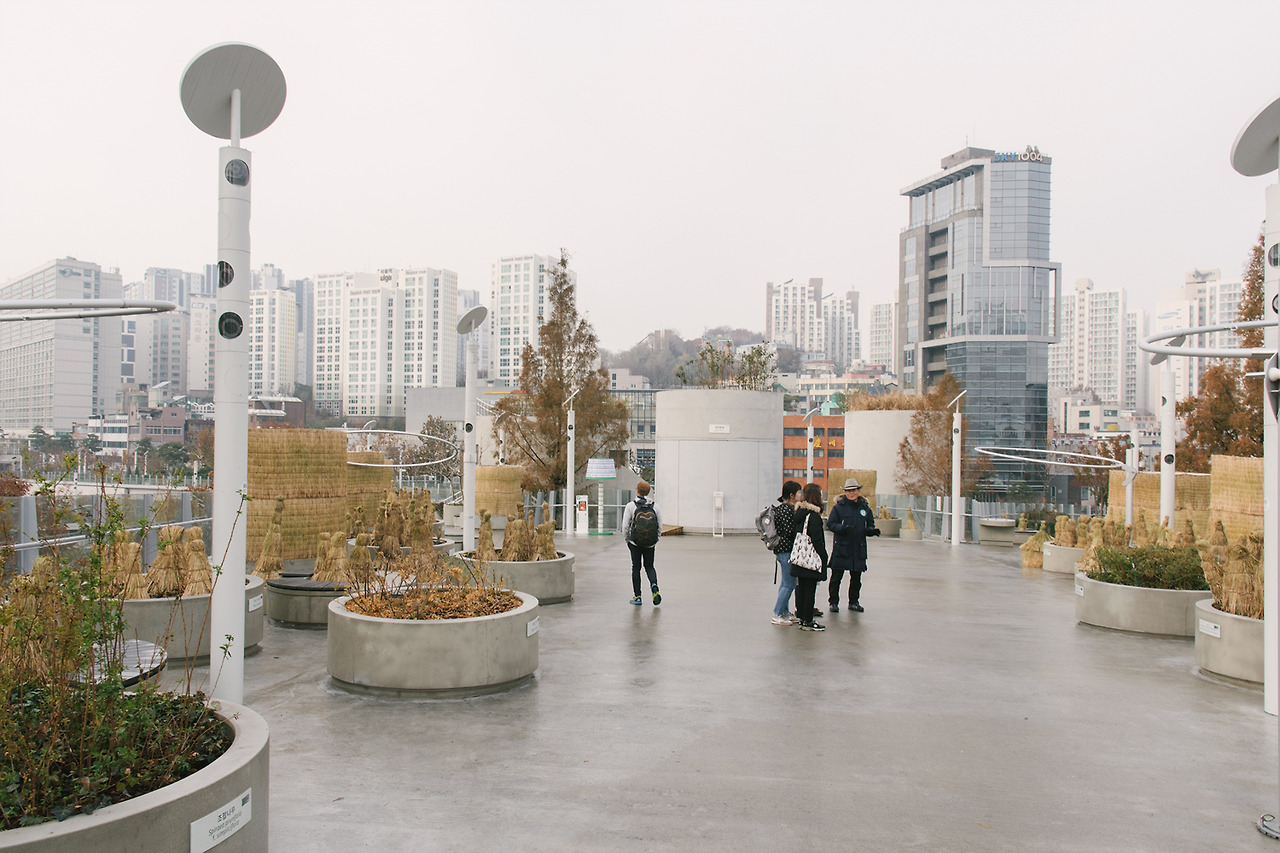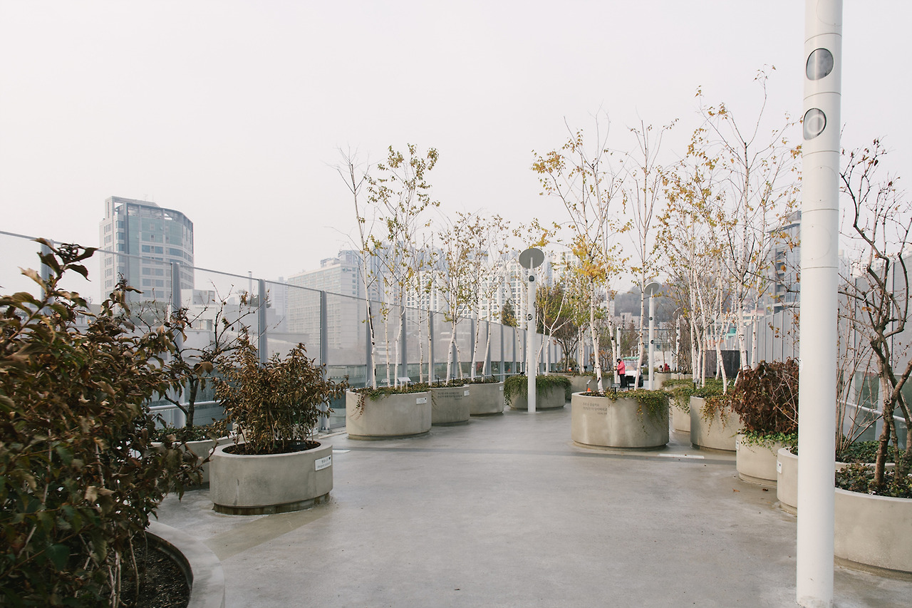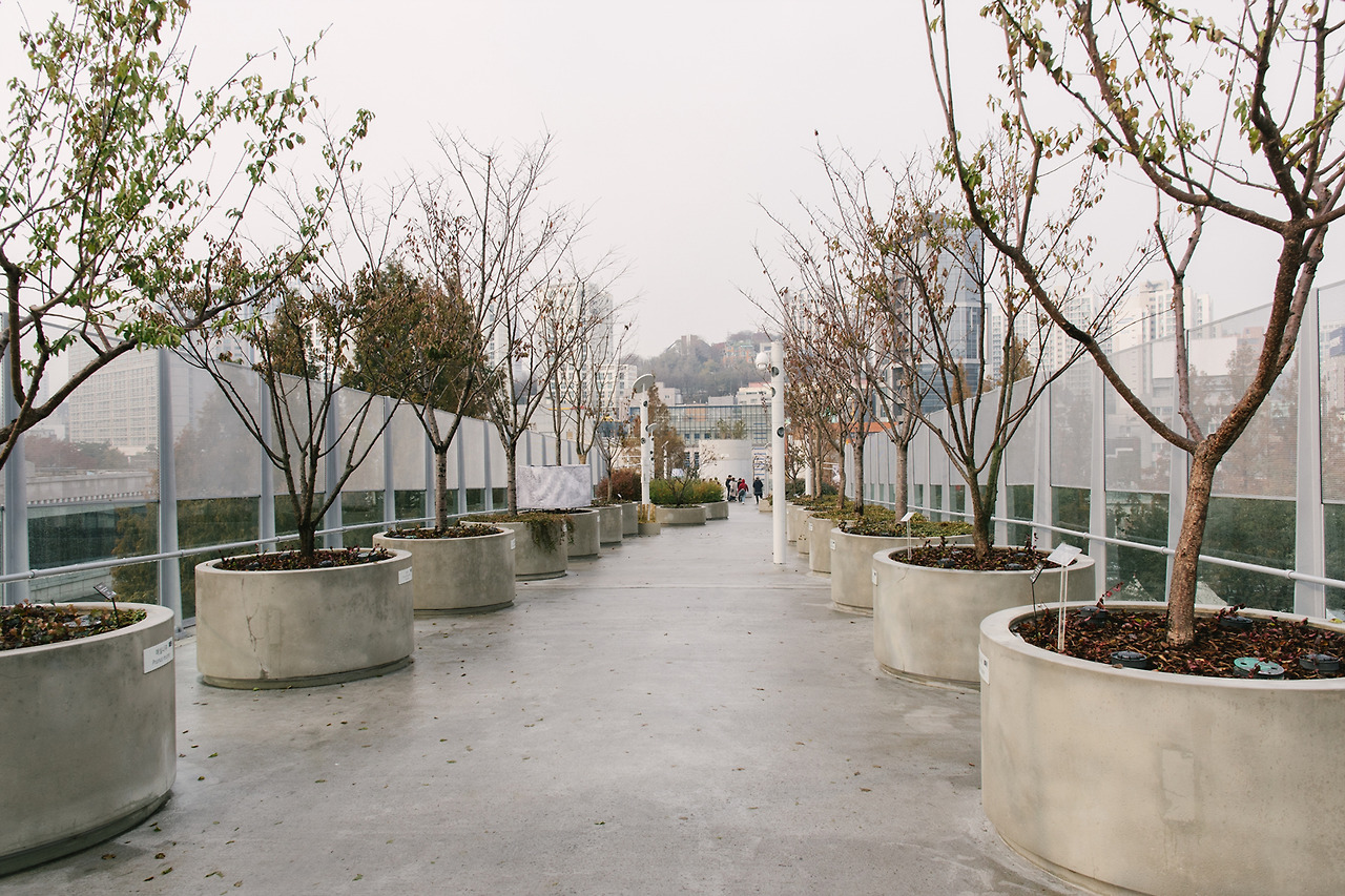 나무들이 자랄 수 있는 최소한의 흙 깊이는 만족해주어야 했기 때문에 콘크리트 화분은 꽤나 높아졌다. 육중하게 그곳에서 움직일 수 없도록 박혀 있는 콘크리트 화분들은 서울로를 방문하는 사람들이 많을 때면 동선을 방해하기도 한다. 그 사이사이로 재빠르게 움직이는 것이 답.