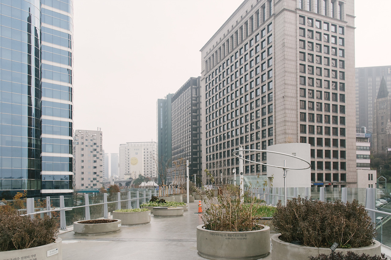 좋은 뜻과 건축적인 개념으로 개장하자마자 외국인들이 찾아오는 관광지가 된 서울로에게도 아쉬운 점이 왜 없으랴. 콘크리트 화분은 조금 더 작았으면 좋겠고, 그게 힘들다면 나무들은 높이 솟아 그늘이라도 잔뜩 만들어줬으면 했다. 고작 건물 두 채와 연결되기보다는 더 많은 건물과 연결되어 도시 그 자체가 되었으면 더 멋졌을 것이다.