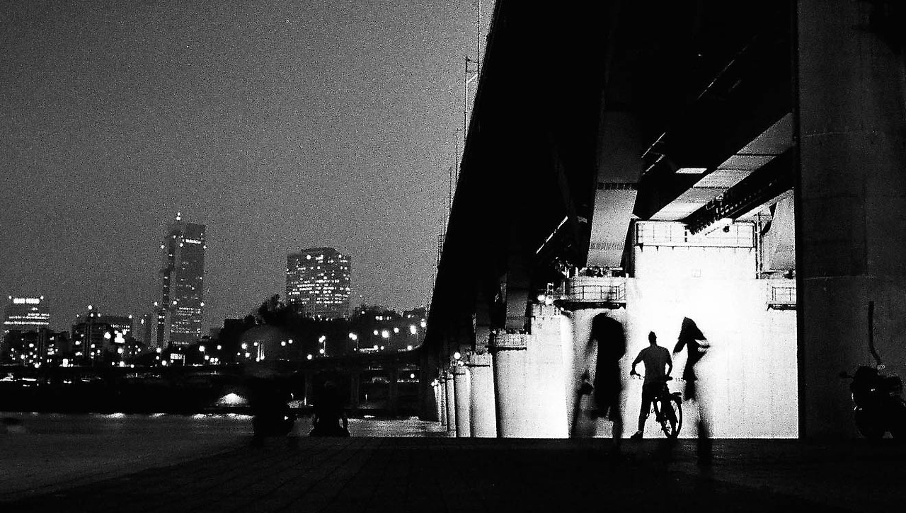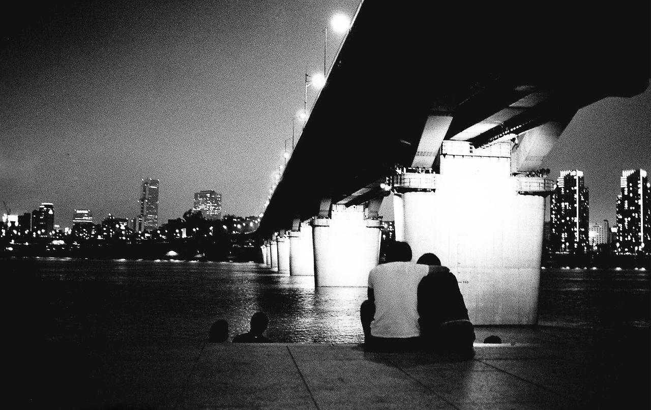 무더운 여름밤. 많은 사람들은 한강을 바라보며 다리 아래 돗자리를 깔았다. 아니, 때로 벤치에 앉거나 땅바닥에 풀썩 주저앉기도 했다. 더운 공기 때문이었을까. 사람들은 조금 더 격식을 차리지 않는 것처럼 보였다. 가족들끼리 편한 복장으로 산책을 나와 잠시 시간을 보내거나, 친구들끼리 모여 왁자지껄 떠들기도 했다.