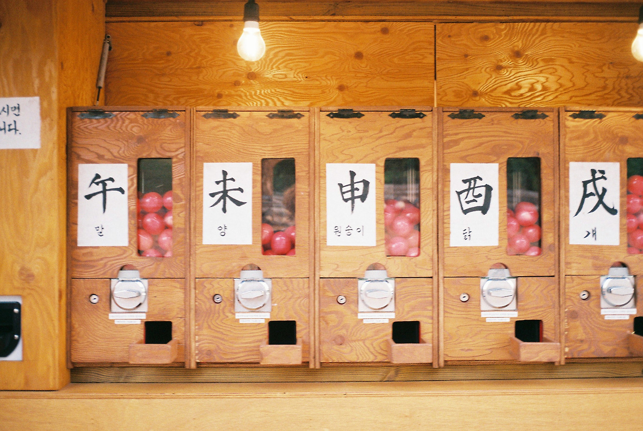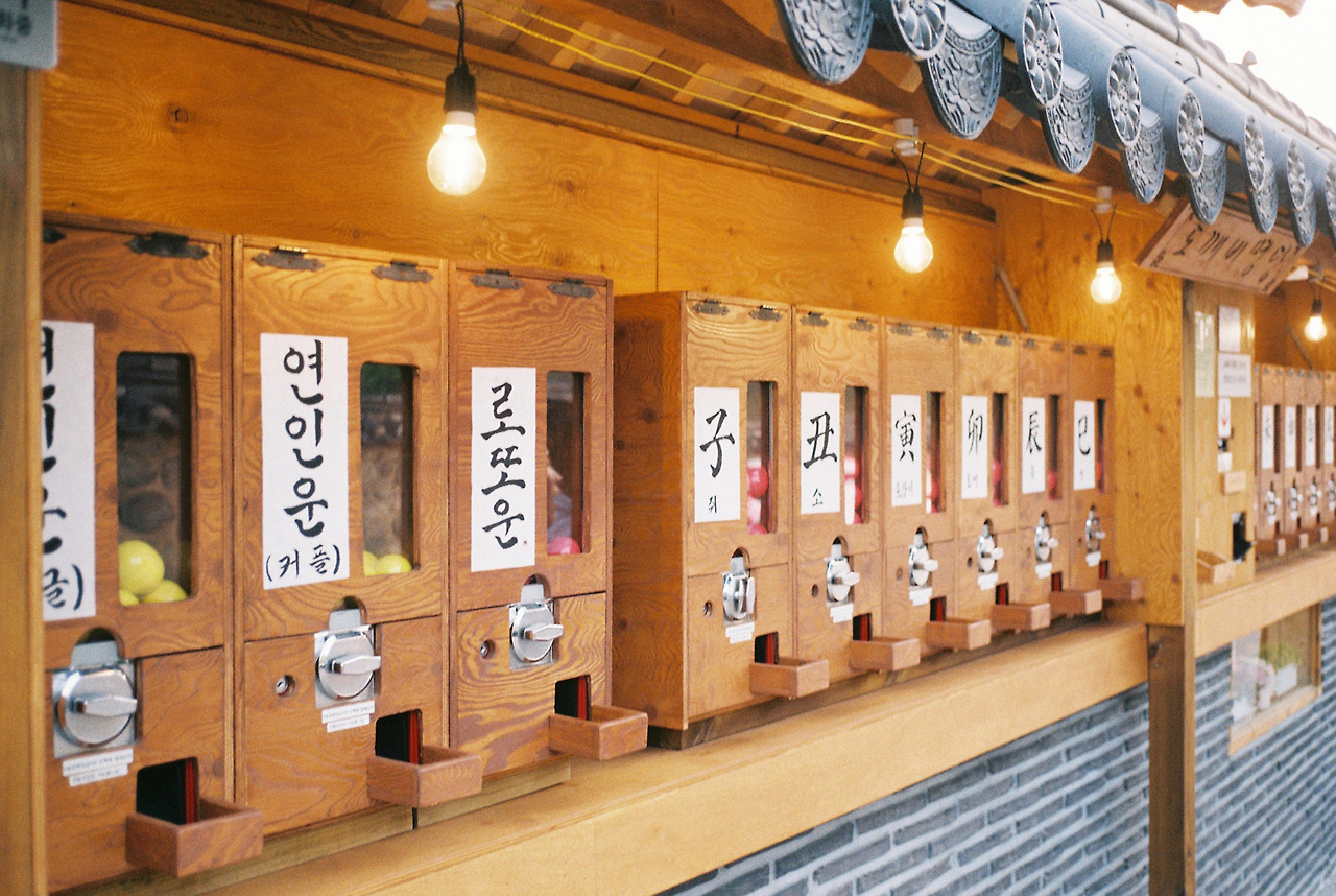 누가 이런 깜찍한 아이디어를 냈을까. 대릉원 뒤편의 작은 골목, 도깨비 명당이라는 이름을 가진 뽑기의 영역이 등장한다. 기와를 머리 위에 얹고, 붓글씨로 그럴듯하게 카테고리를 나눴다. 내가 본 뽑기 기계 중 가장 한국적이다. 이렇게나 열심히 만들었다니, 좀 귀엽다.