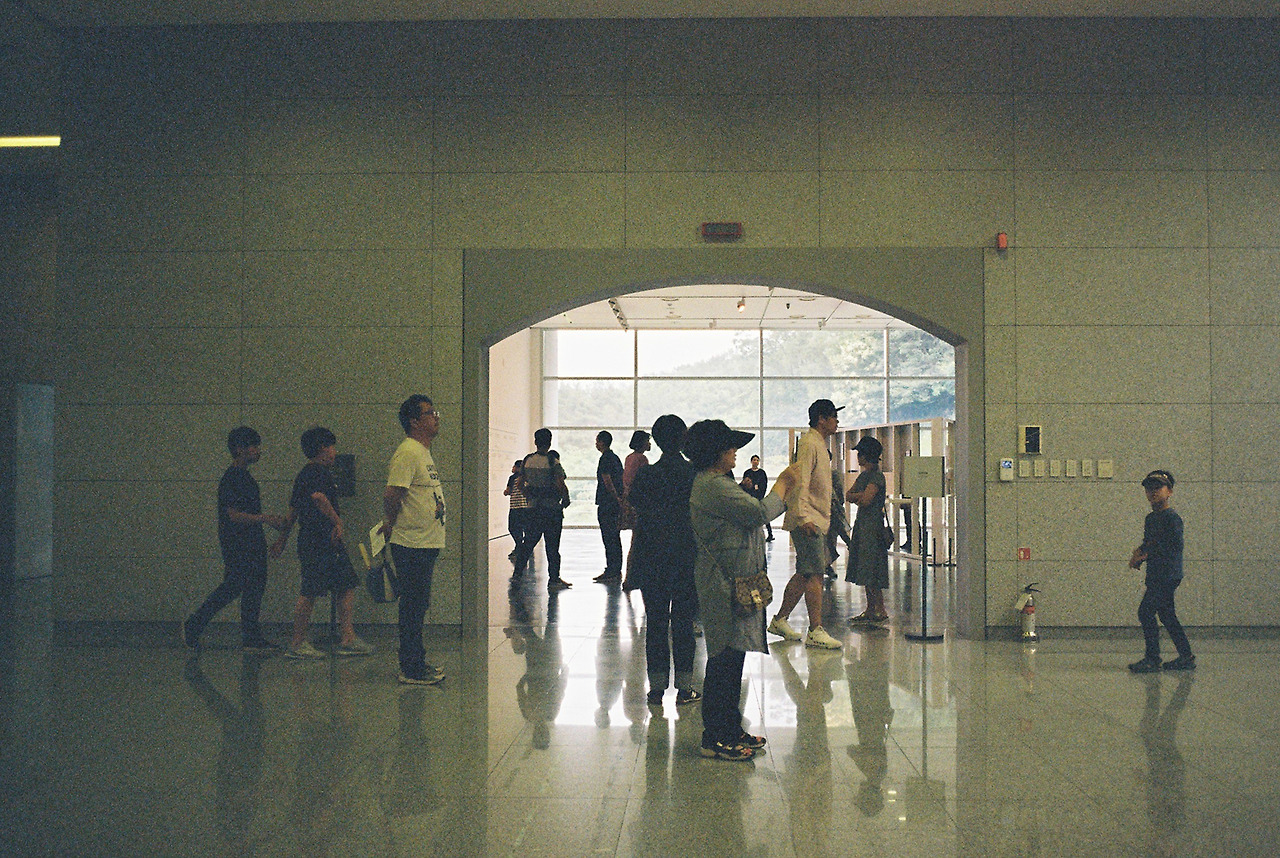 미술관에서는 전체 공간에서 하나의 전시를 하기도 하고, 규모에 따라 전시관을 나눠서 여러 전시를 진행할 경우도 있는 터라 전시관과 전시관 사이에는 일정 규모의 빈 공간을 둔다. 보이드(Void) 공간이라고도 부르고, 홀(Hall)이라고도 부를 수 있는 공간이다. 과천 국립현대미술관도 그렇고, 국립중앙박물관도 비슷한 맥락을 가지고 있다. 이렇게 뻥 뚫린 공간에서는 배경이 깨끗하기 때문에 사람들의 움직임이 잘 포착되어 사진을 찍기 좋은데, 이번에도 우연찮게 재밌는 사진이 찍혔다.