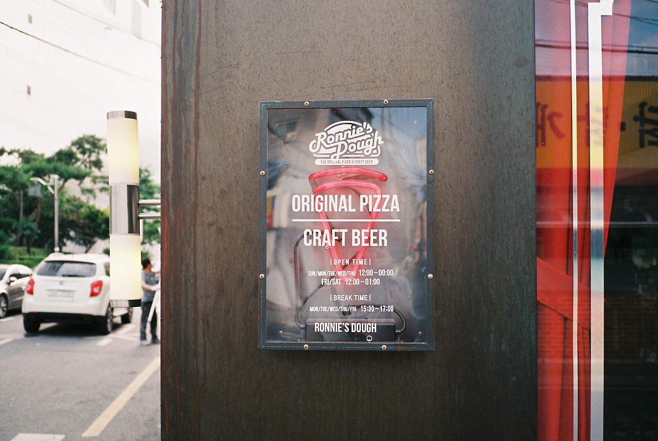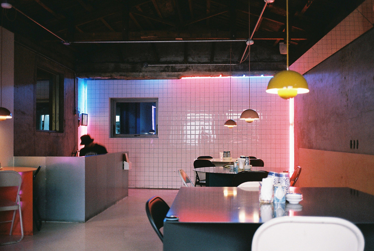 입구를 들어오자마자 네온사인이 보인다. 절묘하게 도시밤에 첫 발걸음을 내딛자마자 그 빛을 맞도록 걸어놨다. 의도한 것일지는 모르나, 외부와 내부의 경계를 아주 뚜렷하게 만든다. 붉은 한자라니, 홍콩이 떠오른다.