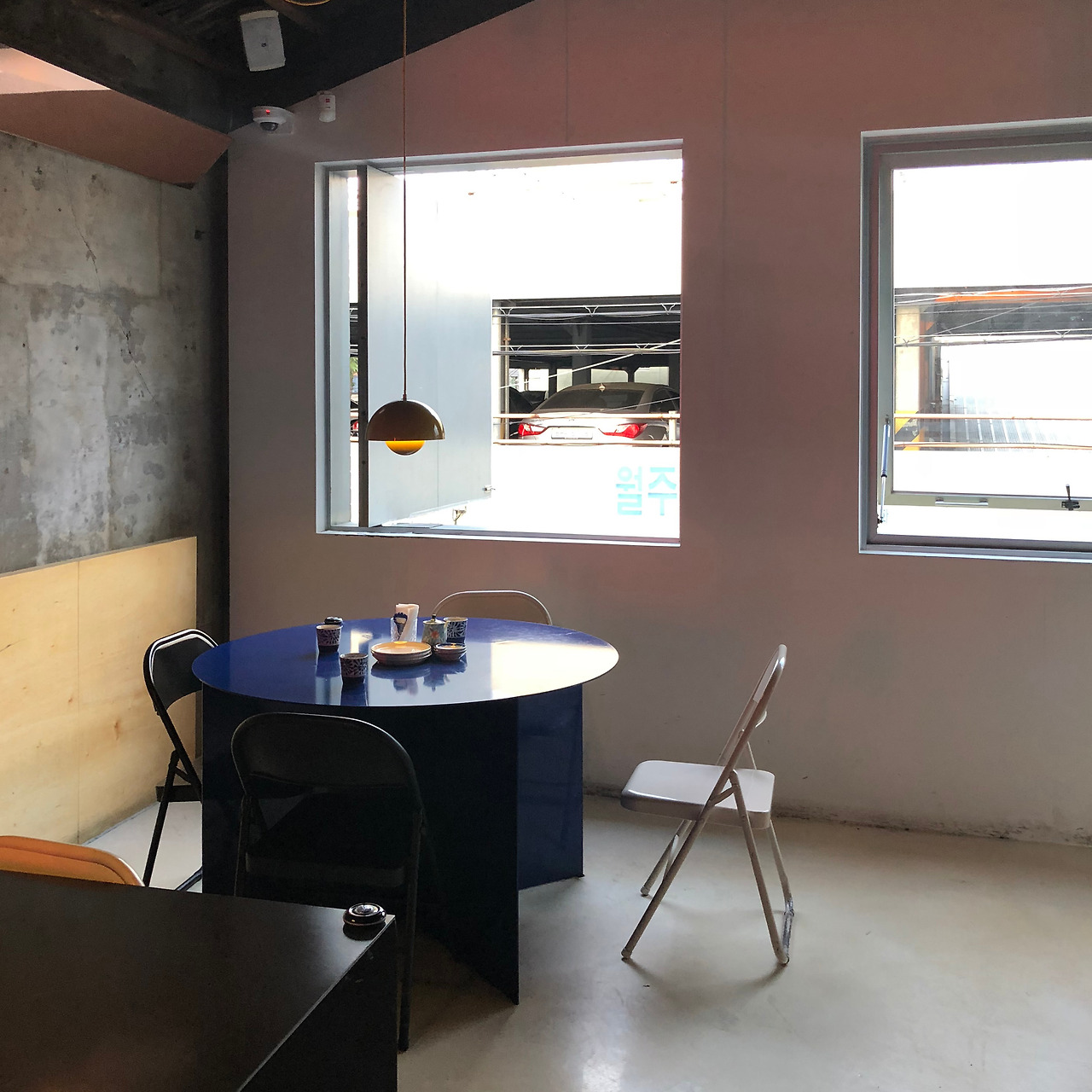 최대한 창과 문을 쪼개지 않고 큰 판으로 뒀다. 하나의 창을 제외하고는 유리는 쓰이지 않았다. 창에서 유리를 삭제한다는 것은 아마 호빵에 팥을 넣지 않기로 결정하는 것만큼 큰 결심이다. 대개 그런 선택지는 거르고 보니까.