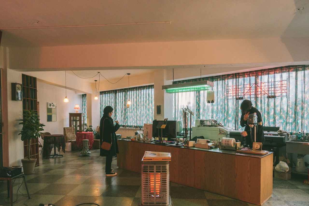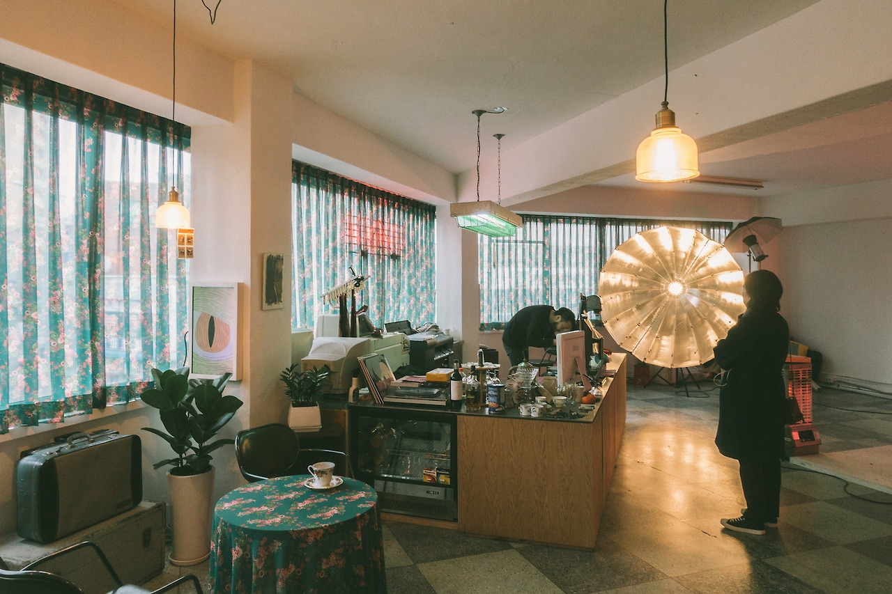 스튜디오와 필름 현상. 여기까지 이상하지 않다. 굉장히 자연스러운 전개처럼 보인다. 놀라운 건 공간의 한편에 테이블과 의자를 두고, 카페를 차렸다는 점이다.
