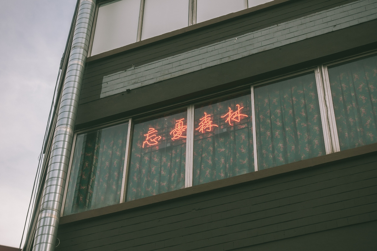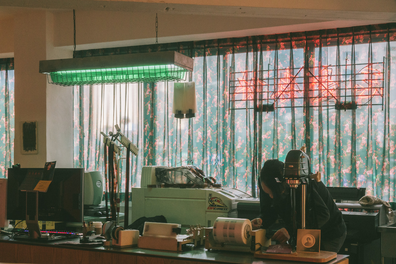 망우삼림의 공간은 수많은 의미의 중첩으로 점철되어 있다. 을지로라는 위치에 붉고 푸른 원색의 패턴과 붉은 네온사인을 얹어 홍콩 어딘가를 상상케 한다. 몇십 년은 되었을 공간 중 어딘가는 그대로 두고, 또 어떤 것은 현재의 유행을 그대로 따랐다. 낡고 오래된 공간과 가구 위에 만들어진 공간에서 카카오톡으로 사진을 보내주는 경험은 이제껏 없었다. 무엇보다 지금 새로운 현상소를 열다니, 무모했다.
