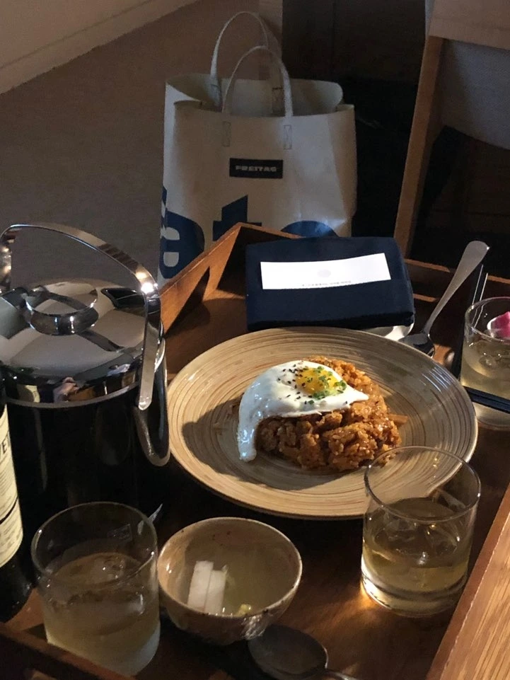 호텔에서 우리는 영화 <인생 후르츠>를 보며 김치볶음밥에 위스키를 마셨다. 영화는 마음을 울렸고, 김치볶음밥은 내가 먹은 김볶 중 가장 비쌌으나 손가락에 꼽는 맛임은 틀림없었다. 네스트호텔에 가면 꼭 먹어야 하는 음식이 아닐 수 없다. 우리가 산지도 잊고 있었던 글렌리벳은 왠지 예상치 못한 보너스와 같은 느낌이라, 룰루랄라 땄다.