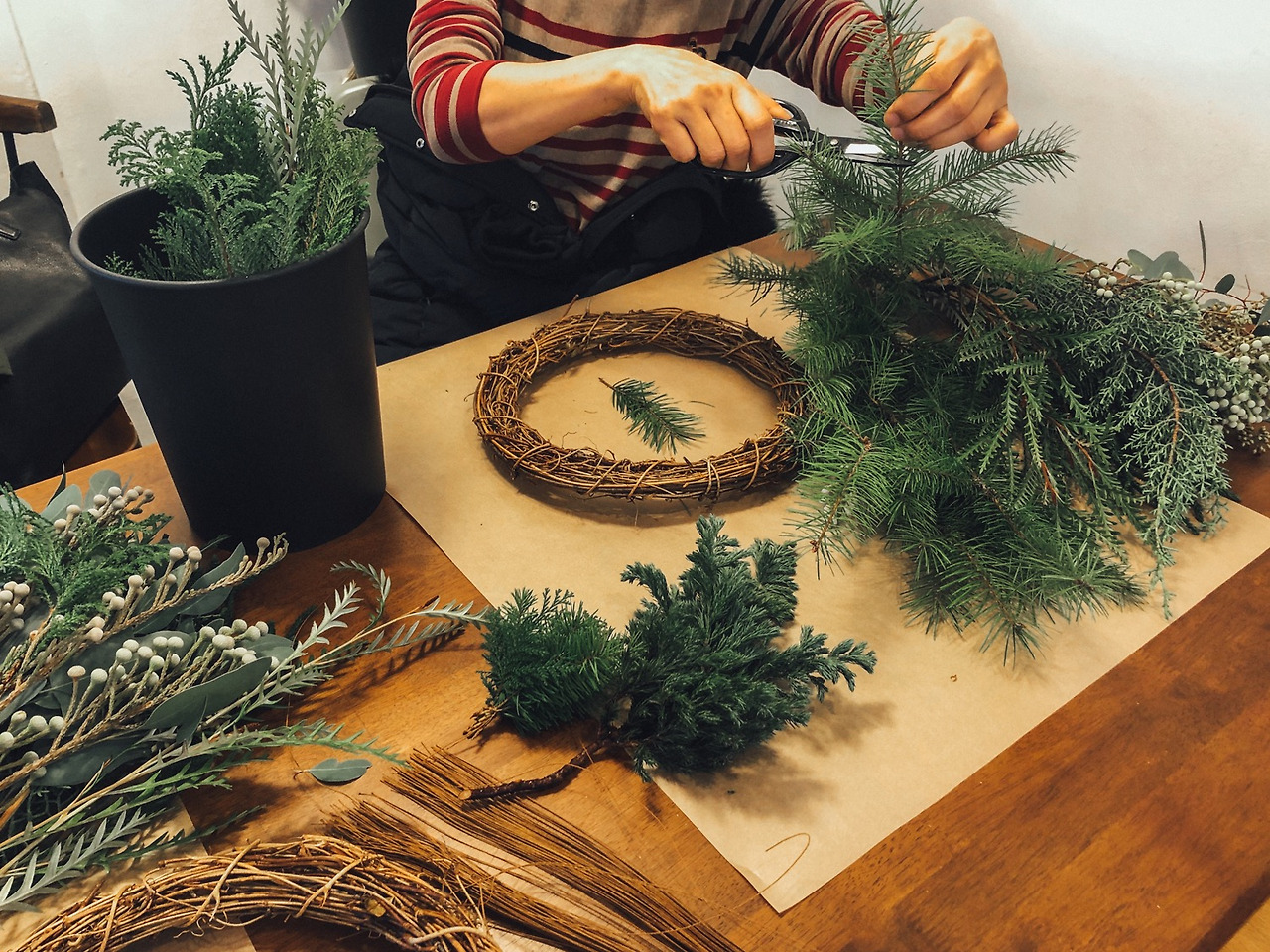 크리스마스가 다가오던 때, 꽃집 문을 열고 리스 만드는 수업도 하시는지 여쭤봤다. 크리스마스에 큰 의미를 두지 않더라도, 리스는 겨울 내내 벽에 걸어두기 좋다. 보기에도 좋고, 향도 오래가니까. 그리고 클래스는 원하는 시간에 미리 예약만 하면 재료들도 모두 준비해주신다고 하여, 크리스마스가 지난 주말에 두 명이서 오겠다고 덜컥 예약을 걸었다. 엄마랑 와서 같이 해야지. 엄마는 좋아할 것이란 확신이 있었다.