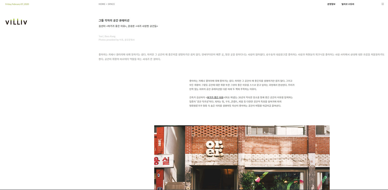 신세계에서 운영하는 빌리브 매거진에 <여기가 좋은 이유>가 소개되었습니다. 기사에선 저를 '좋은 공간을 찾아다니는 것이 인생의 낙인 건축가'로 소개해주셨지만, 사실 그 정도는 아니고 즐거움 정도인 것 같습니다. 인생의 낙은 노는 것인 것 같아요.
