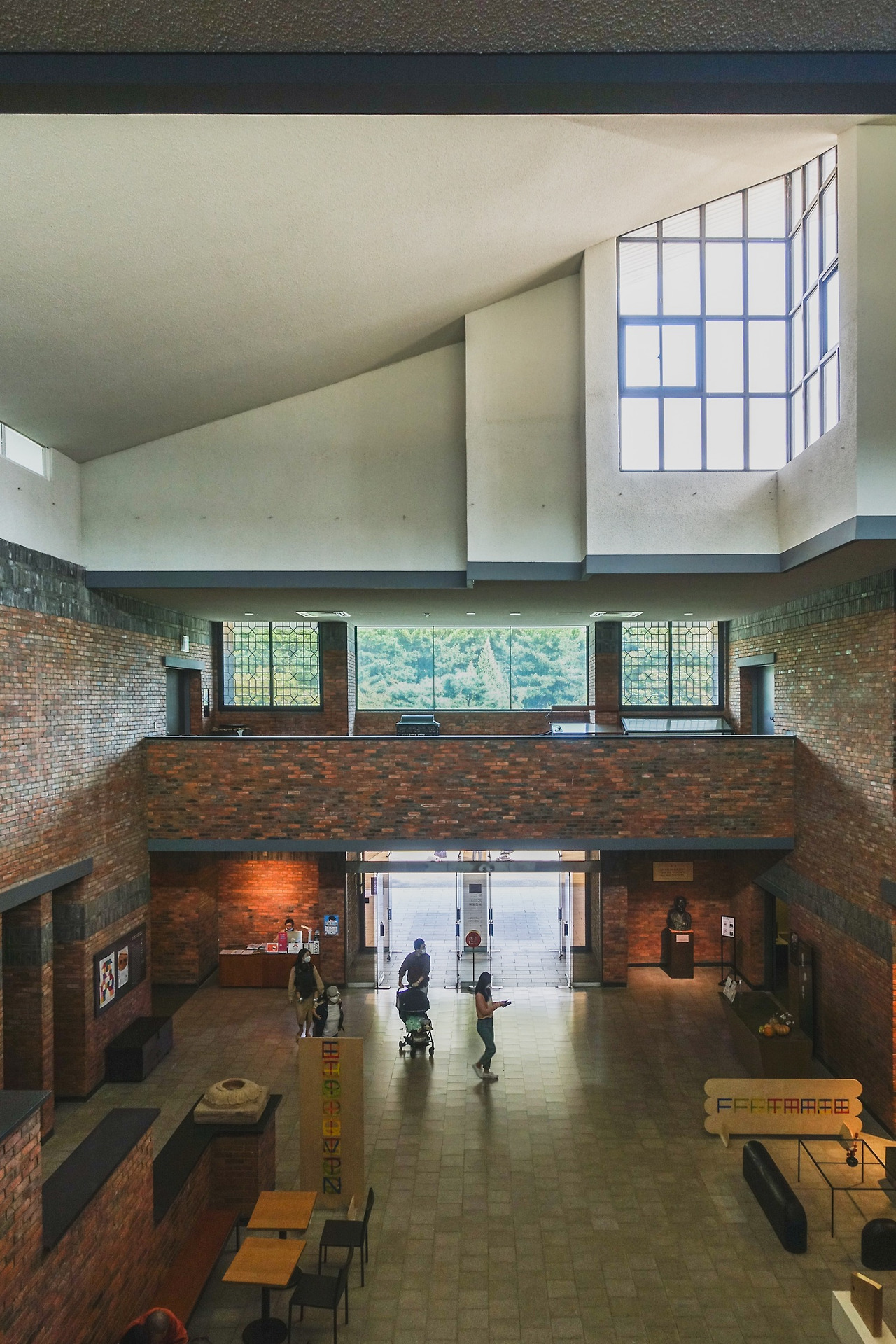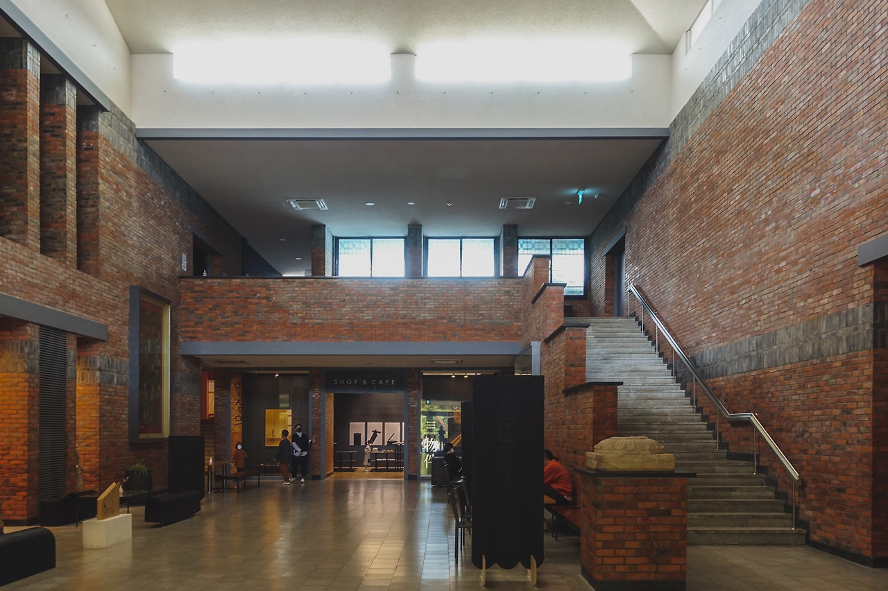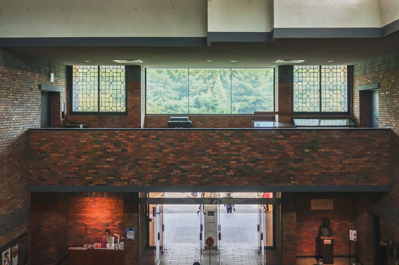 90년대 음악이 그러했다면, 건축에서는 아무래도 근대 건축이 그런 시대가 아니었을까. 두꺼운 콘크리트 벽을 또다시 두꺼운 벽돌로 몇 겹이나 감싸 땅에 내려앉은 무거운 건물들. 3D 프로그램이 없었던 시대에 오로지 모형과 도면만으로 만들어 낸 독특한 공간 구조. 김수근 건축가로 대표되는 근대의 1세대 건축가들이 남긴 건축물들은 지금도 많은 이들이 찾는 공간으로 쓰이고 있다. 온양민속박물관의 본관도 딱 한 걸음 내딛자마자 느꼈다. 오, 근대건축스러운데.