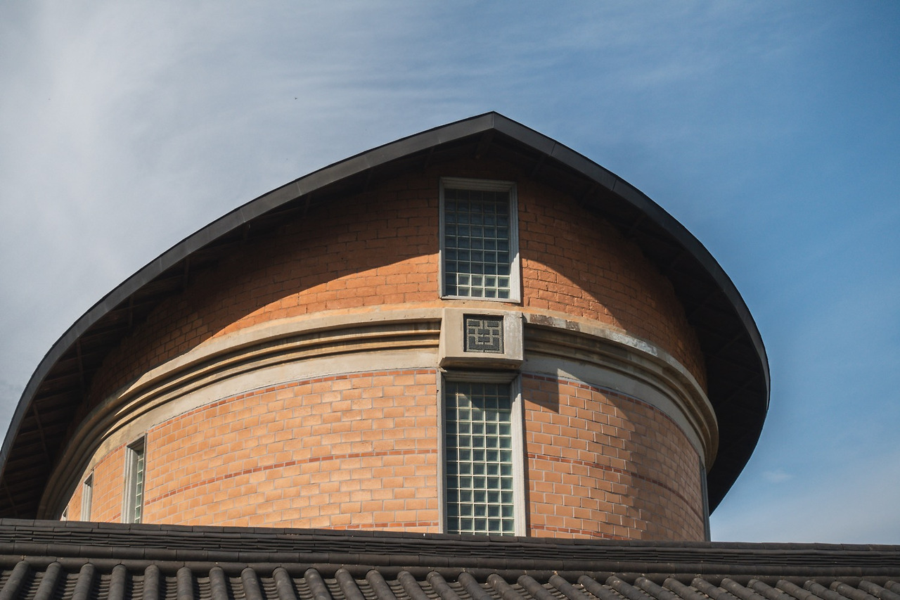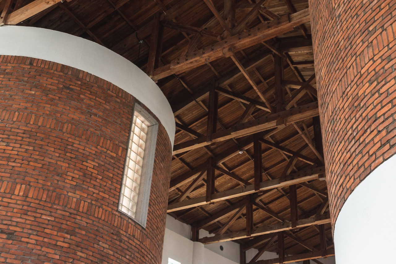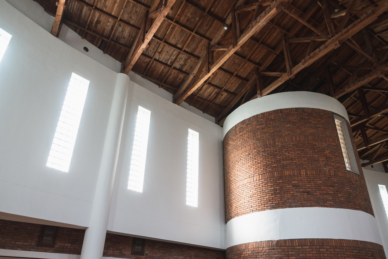 90년대 음악이 그러했다면, 건축에서는 아무래도 근대 건축이 그런 시대가 아니었을까. 두꺼운 콘크리트 벽을 또다시 두꺼운 벽돌로 몇 겹이나 감싸 땅에 내려앉은 무거운 건물들. 3D 프로그램이 없었던 시대에 오로지 모형과 도면만으로 만들어 낸 독특한 공간 구조. 김수근 건축가로 대표되는 근대의 1세대 건축가들이 남긴 건축물들은 지금도 많은 이들이 찾는 공간으로 쓰이고 있다. 온양민속박물관의 본관도 딱 한 걸음 내딛자마자 느꼈다. 오, 근대건축스러운데.