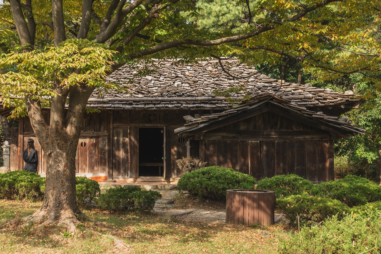 전시는 너와집에서도 이어지고 있었다. 너와는 200년 이상 자란 소나무 토막을 도끼로 쪼개어 만든, 일종의 목재 기와라고 이해하면 될 것 같다. 너와 지붕을 가진 집이라는 뜻의 너와집은 본래 강원도 삼척시에 있었던 것을 1983년 이곳 온양민속박물관에 복원해 냈다.