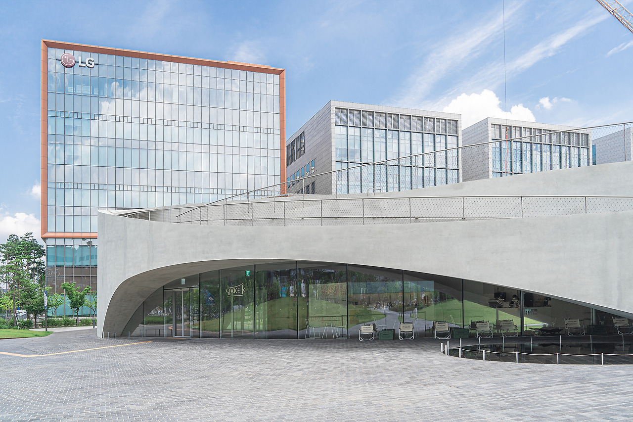빽빽하게 들어 찬 서울의 구도심과 달리 김포 공항 근처의 신도시인 마곡은 대규모의 업무 단지로서 자리를 잡고 있음에도 불구하고 도시의 필수적인 녹지 공간을 잃지 않았다. 한강에서부터 이어지는 습지생태공원과 서울식물원을 거쳐 올해 완공 예정인 LG아트센터가 마곡의 거대한 녹지 축을 이룬다. 그것이 끝이 아니라, 녹지 축에서부터 뻗어 나온 작은 공원들과 산책길이 커다란 건물들 사이로 지나고 있다. 그 중 코오롱에서 운영하는 미술관인 스페이스K는 마곡의 크고 네모난 건물들 사이, 한다리 문화공원의 한 켠에 위치한다.